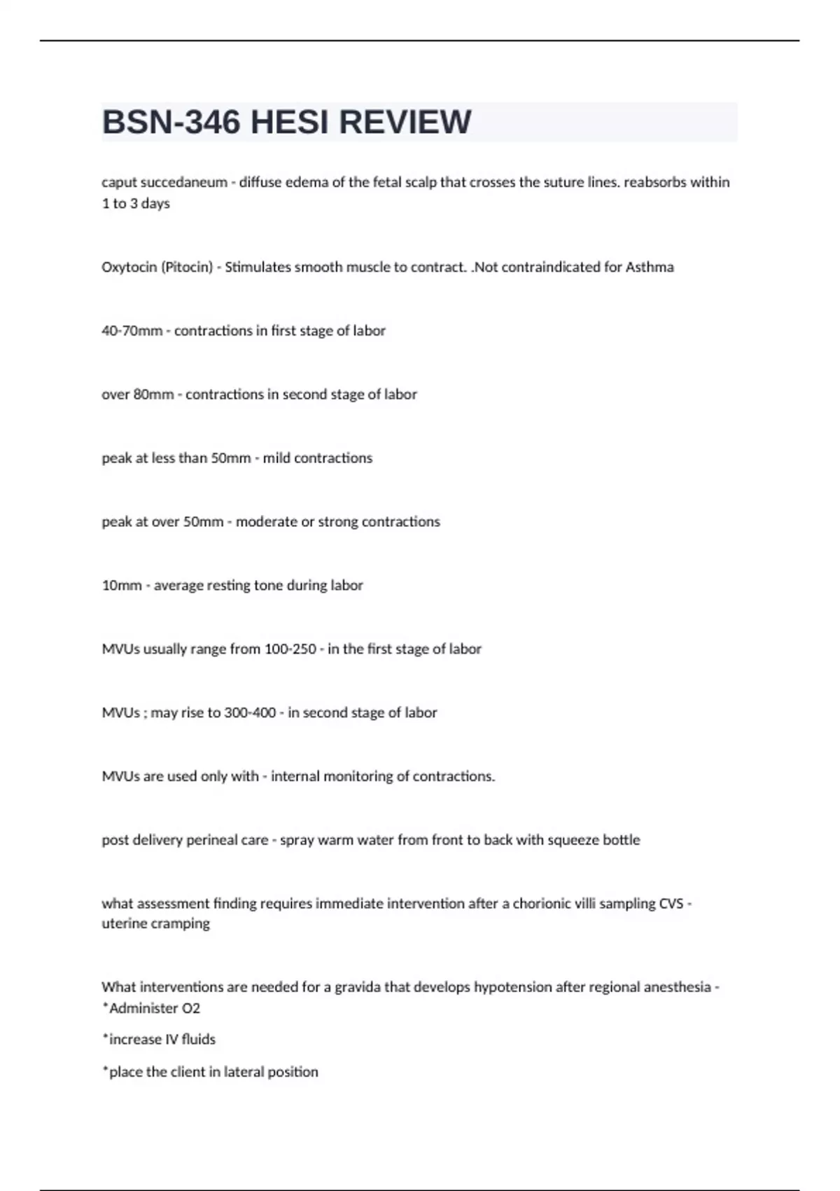 what assessment finding requires immediate intervention after a chorionic villi sampling CVS -