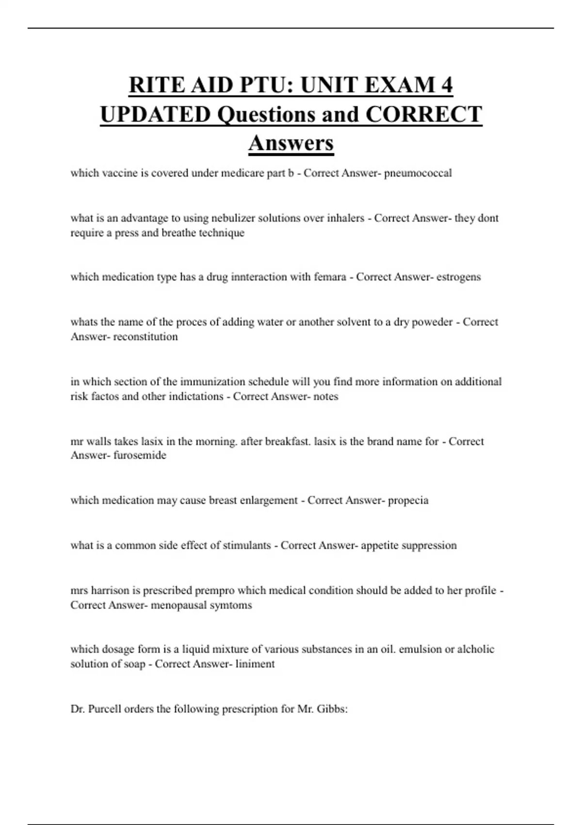 RITE AID PTU: UNIT EXAM 4 UPDATED Questions and CORRECT Answers