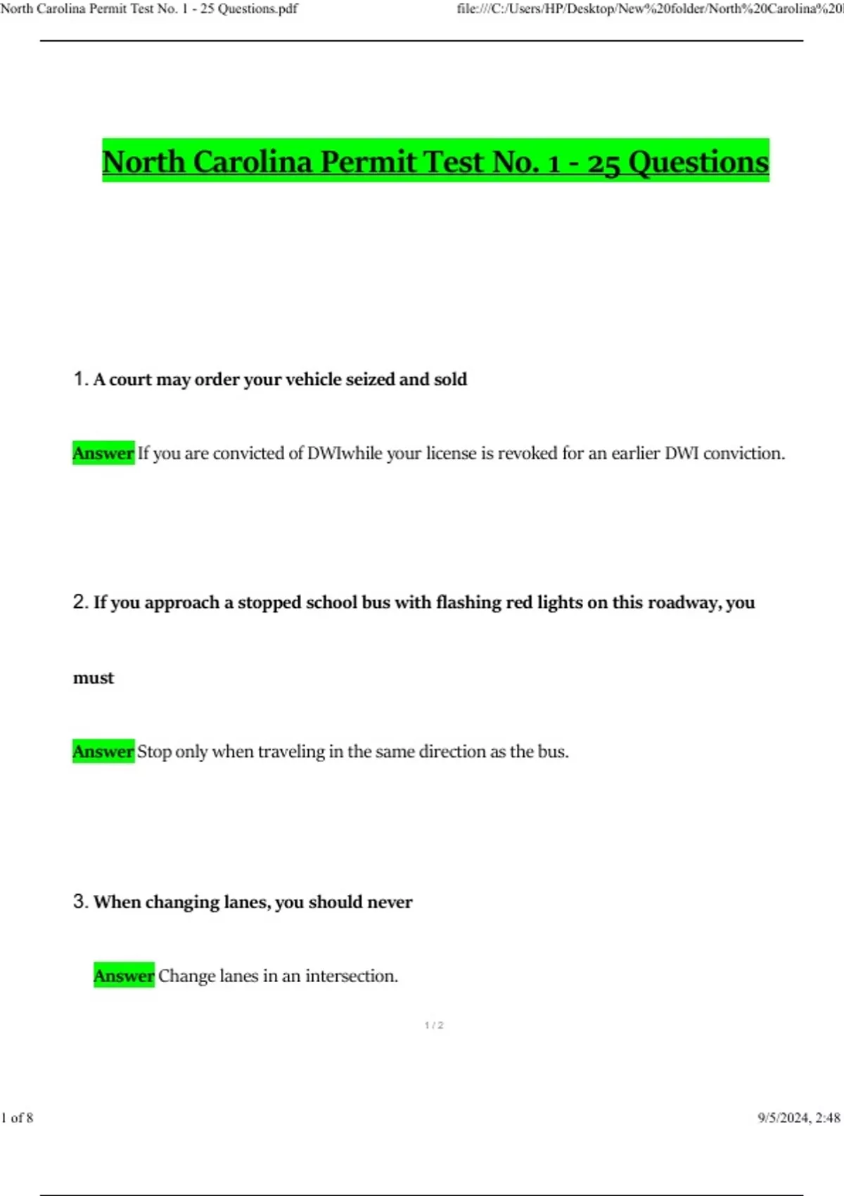 ,North Carolina Permit Test No. 1 - 25 Questions.pdf file:///C:/Users/HP/Desktop/New%20folder/North%20Carolina%20P