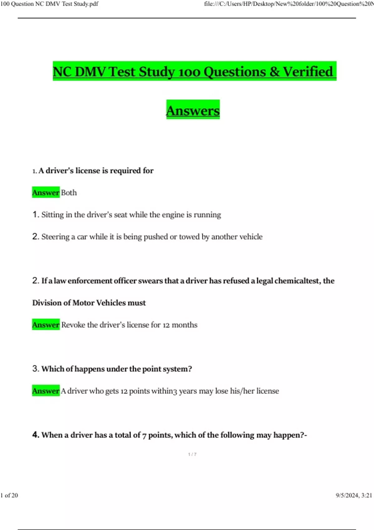 ,100 Question NC DMV Test Study.pdf file:///C:/Users/HP/Desktop/New%20folder/100%20Question%20N