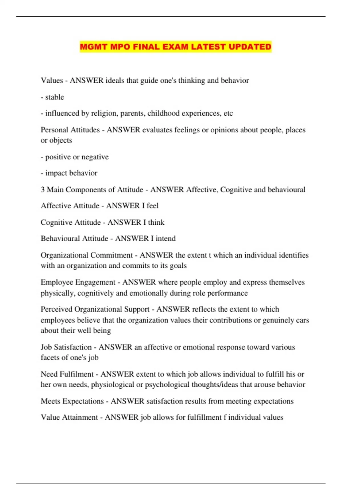 MGMT MPO FINAL EXAM LATEST UPDATED