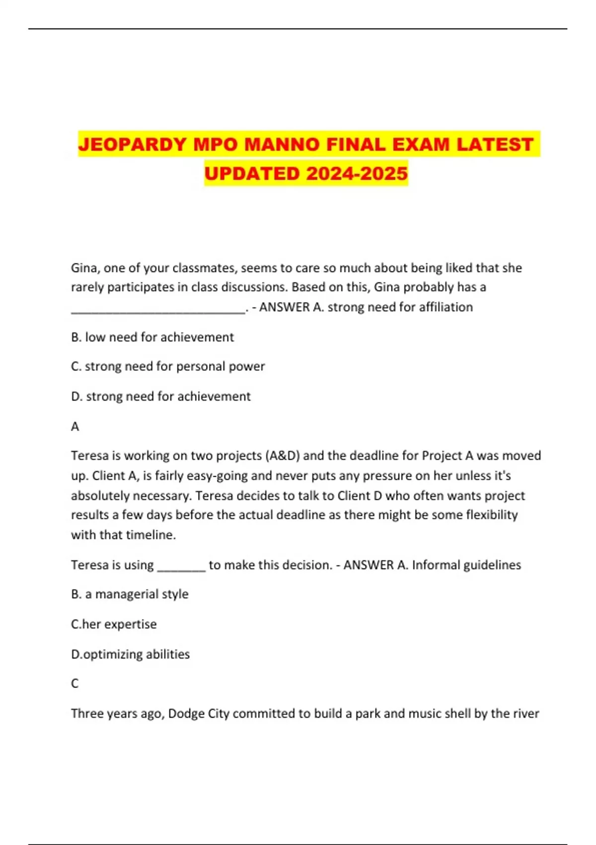 JEOPARDY MPO MANNO FINAL EXAM LATEST