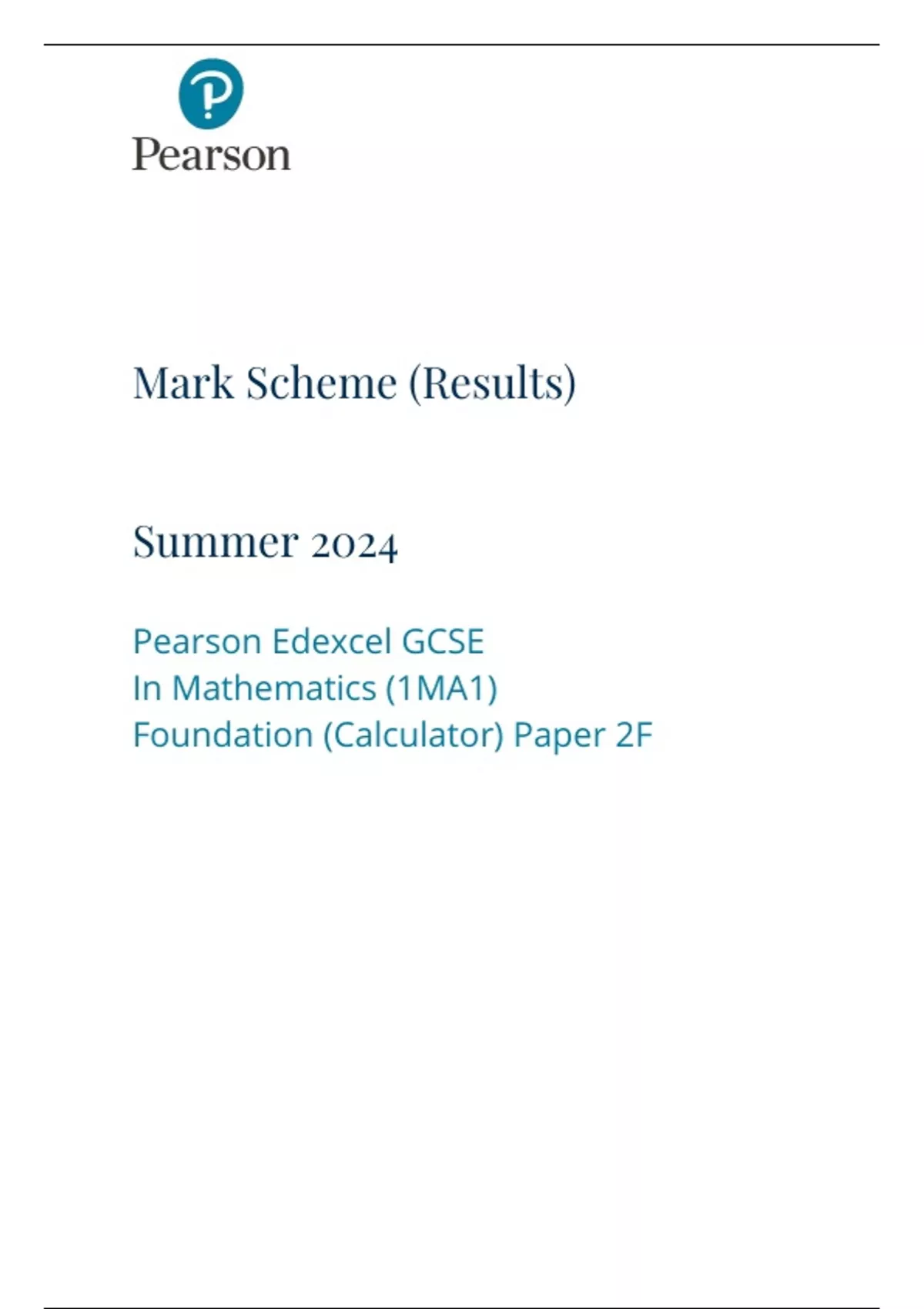 GCSE EDEXCEL June 2025 Foundation Mathematics Paper 2 Calculator Actual Mark Scheme