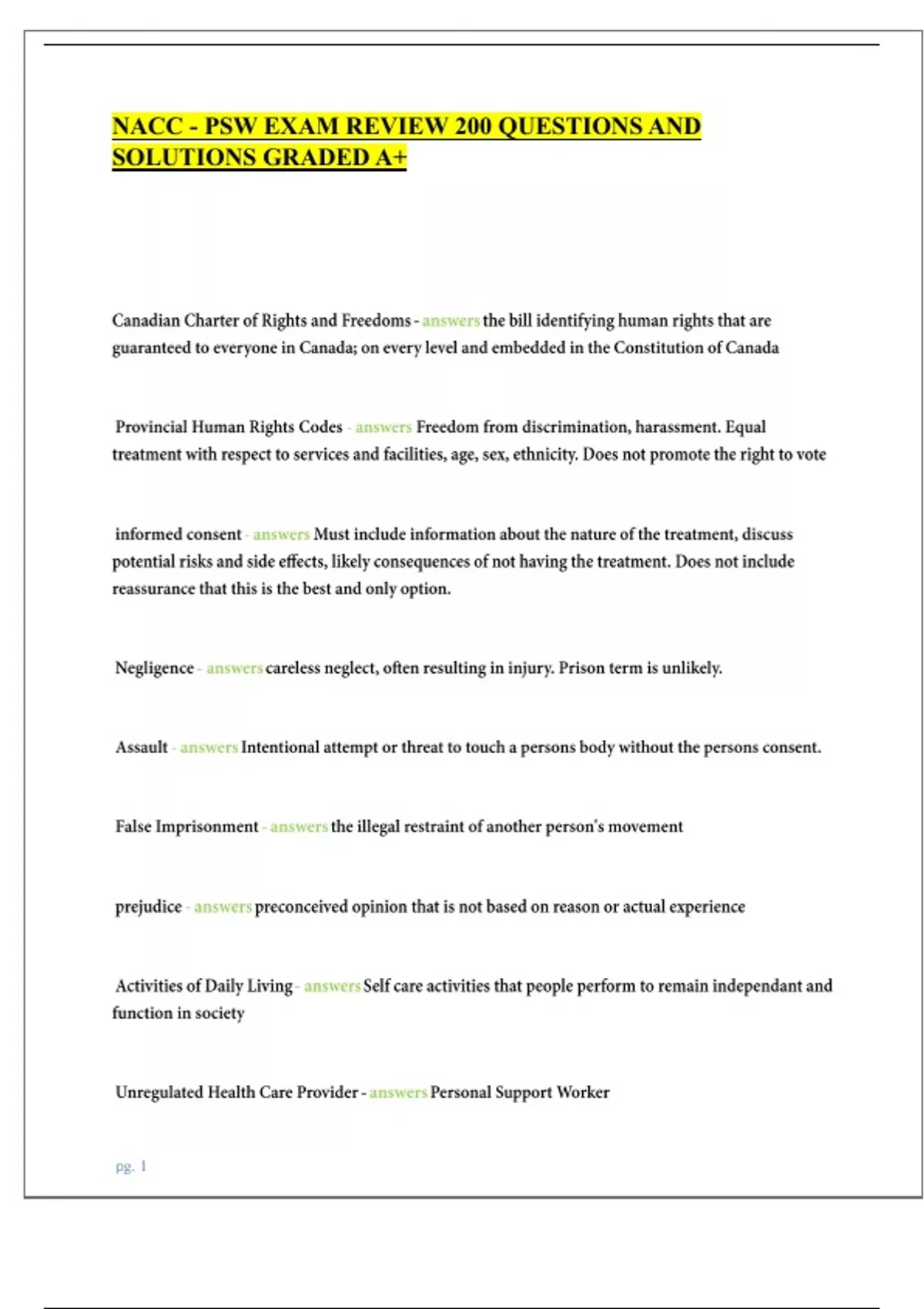 NACC - PSW EXAM REVIEW 200 QUESTIONS AND SOLUTIONS GRADED A+ 2024/2025