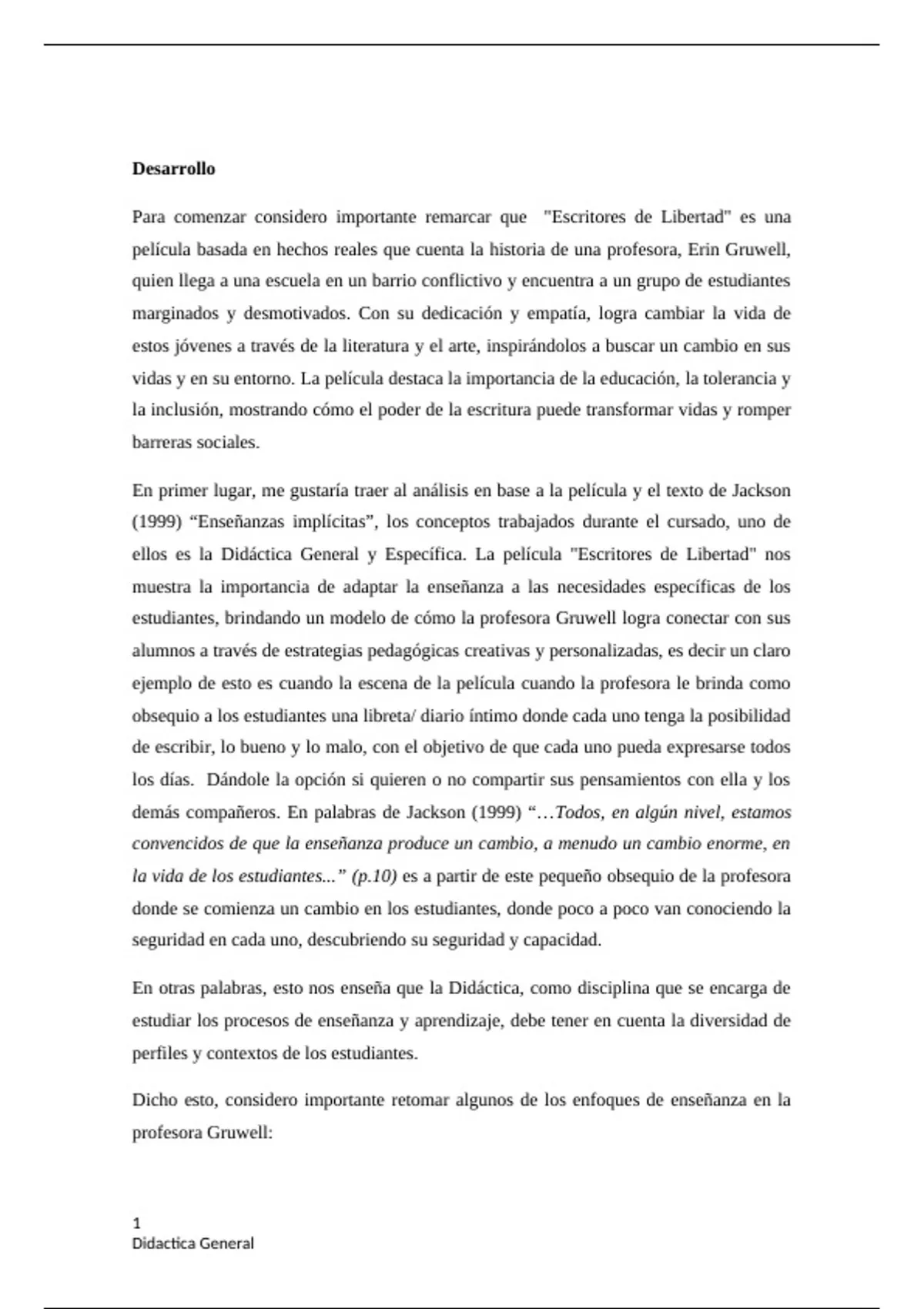 ellos es la Didáctica General y Específica. La película "Escritores de Libertad" nos