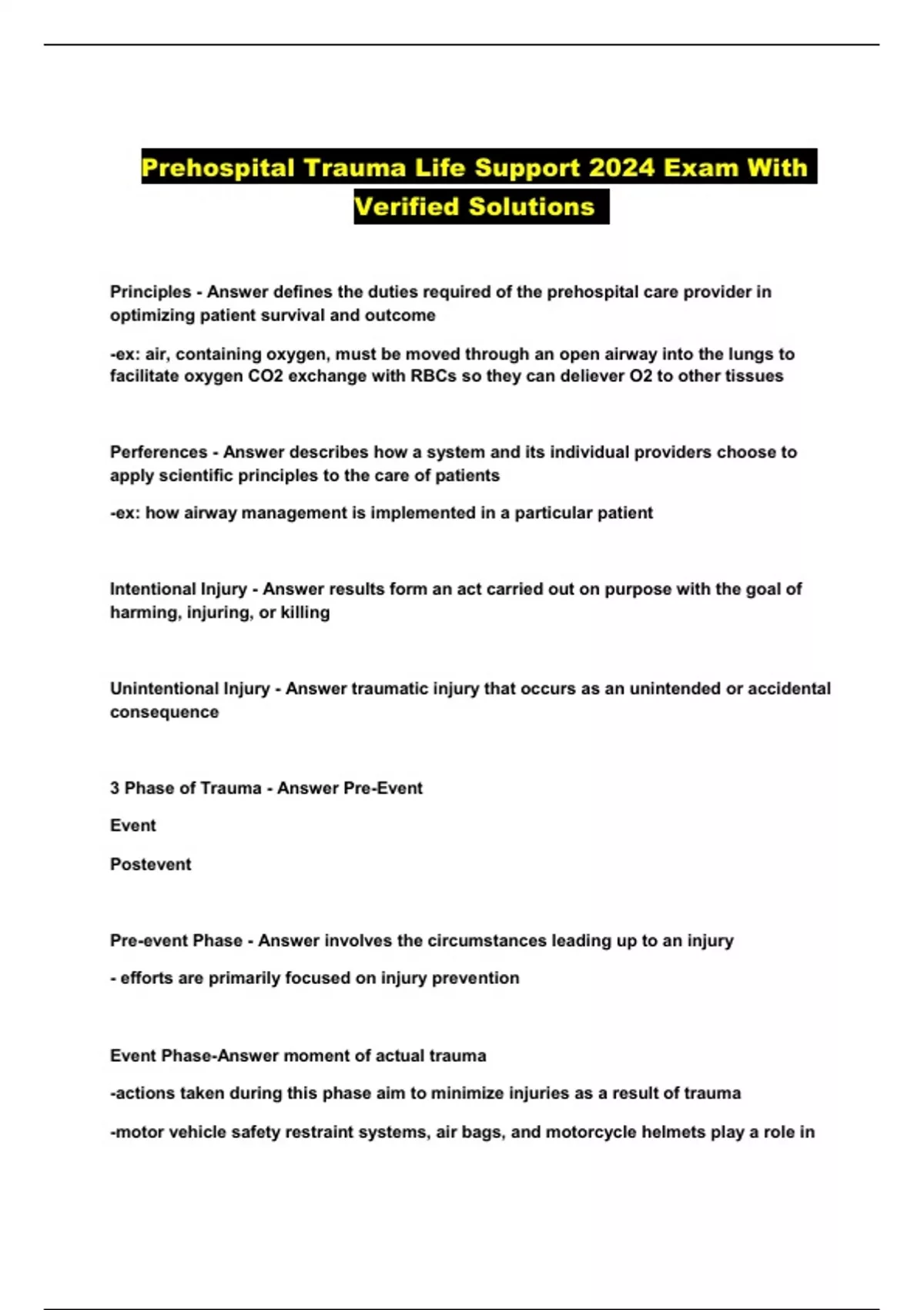 Prehospital Trauma Life Support 2024 Exam With Verified Solutions ...
