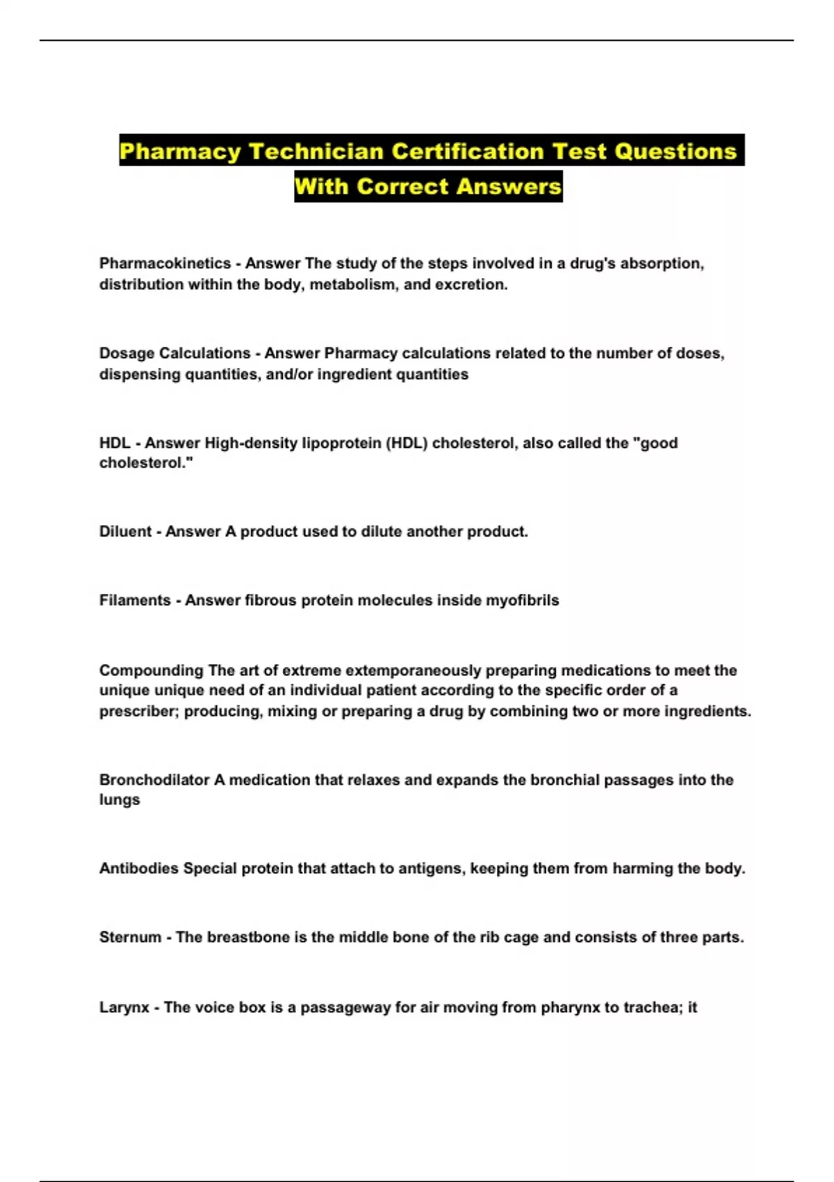 Pharmacy Technician Certification Test Questions