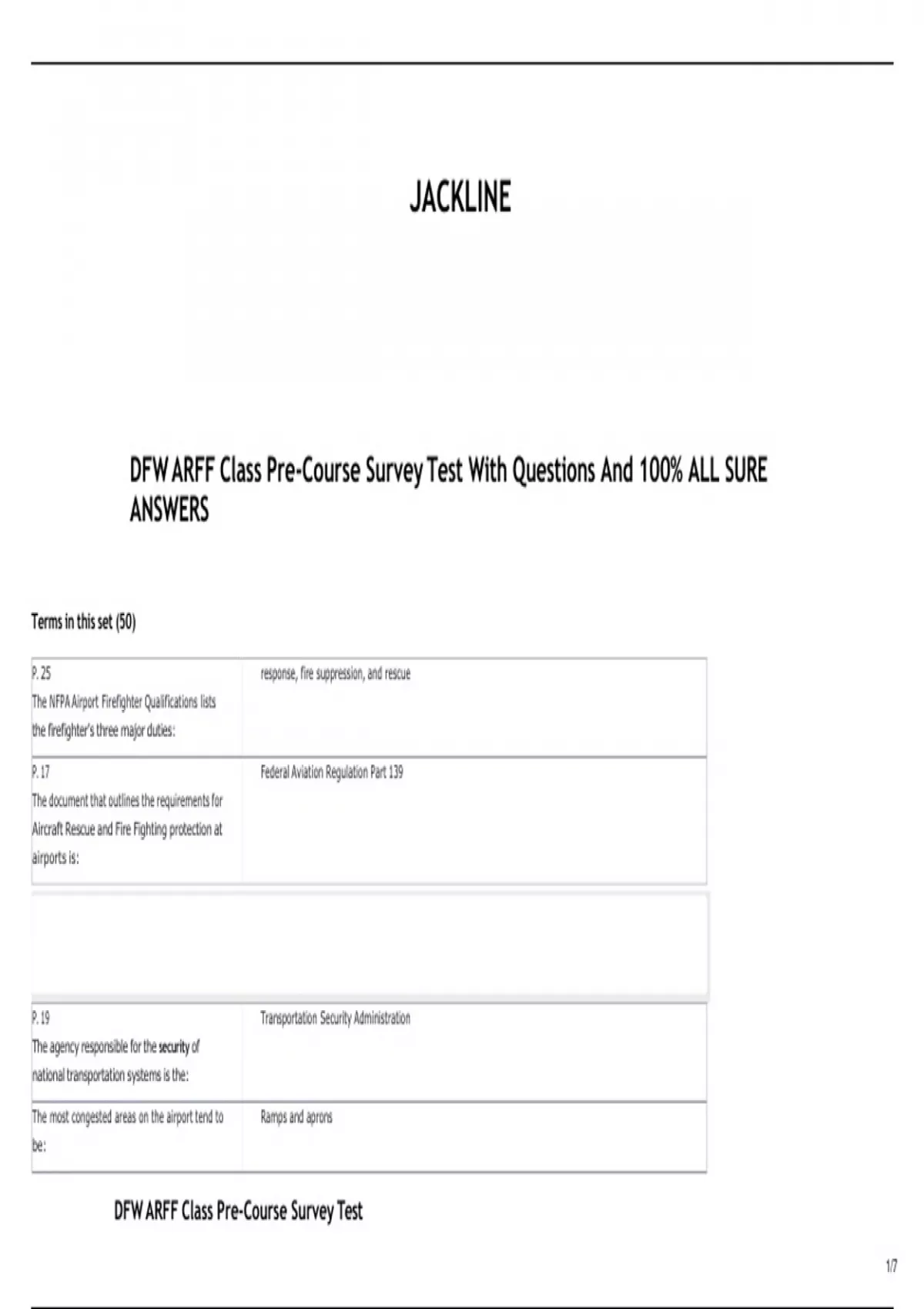 DFW ARFF Class Pre-Course Survey Test With Questions And 100% ALL SURE
