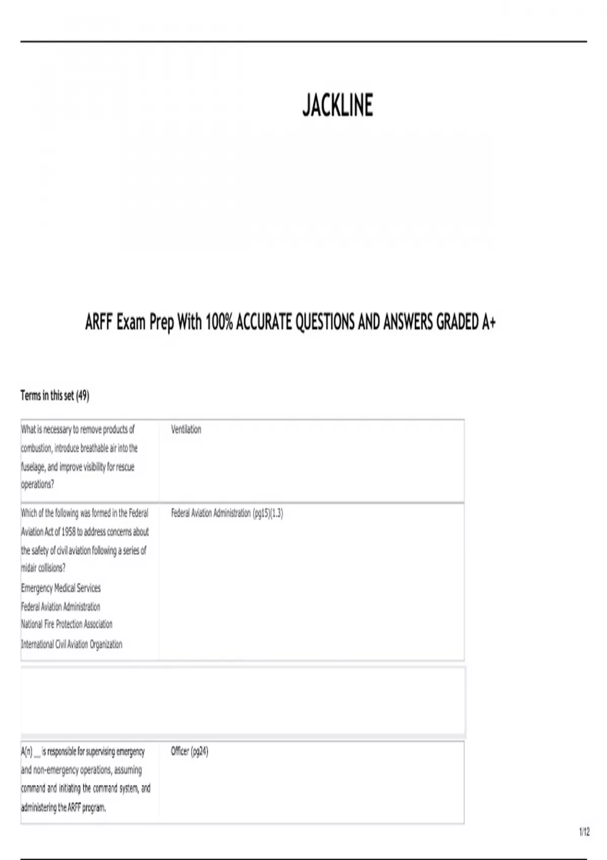 ARFF Exam Prep With 100% ACCURATE QUESTIONS AND ANSWERS GRADED A+