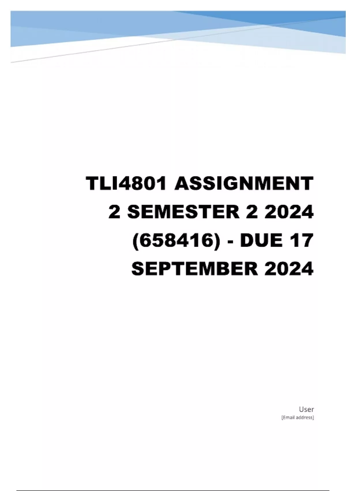 TLI4801 Assignment 2 (COMPLETE ANSWERS) Semester 2 2024 (658416) - DUE 17 September