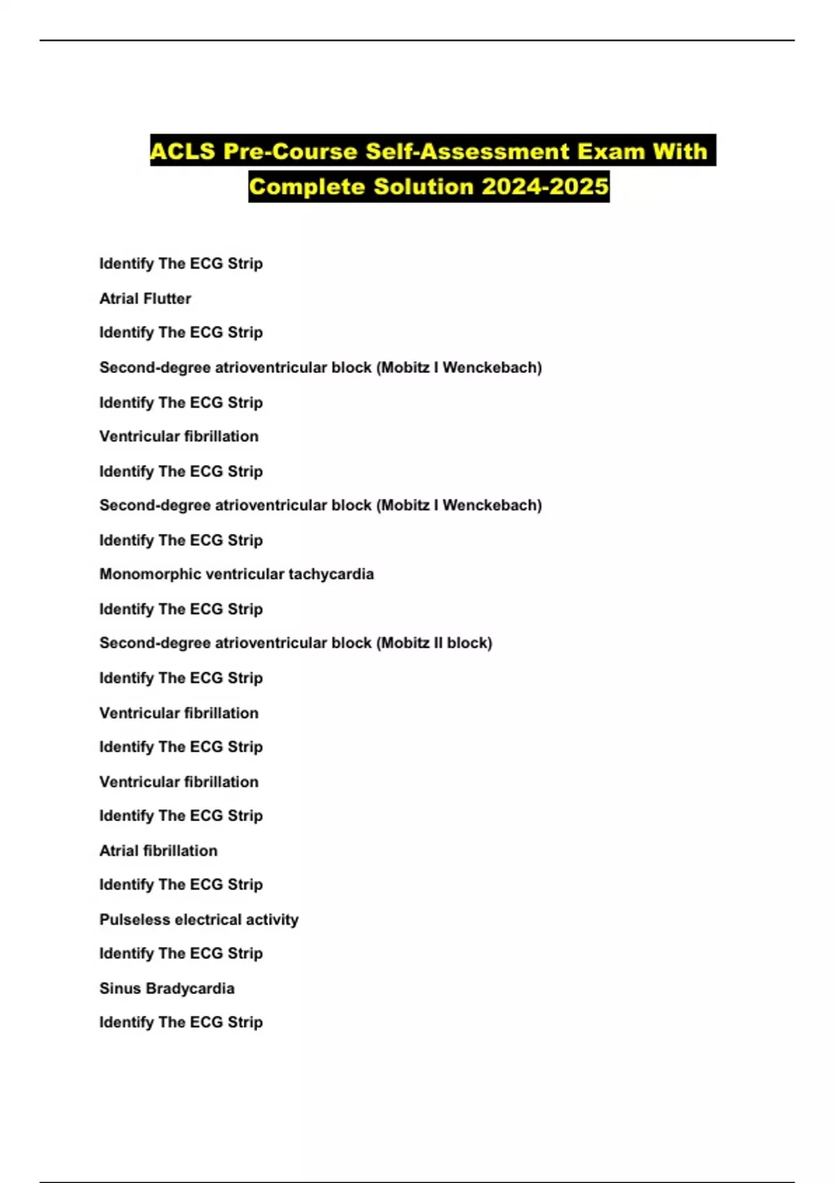 ACLS Pre-Course Self-Assessment Exam With Complete Solution ...