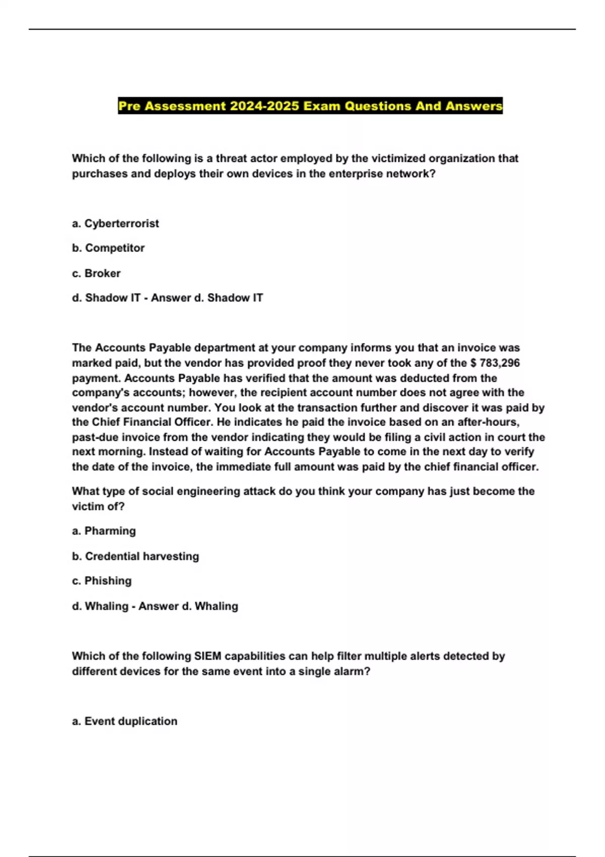 Pre Assessment 2024-2025 Exam Questions And Answers
