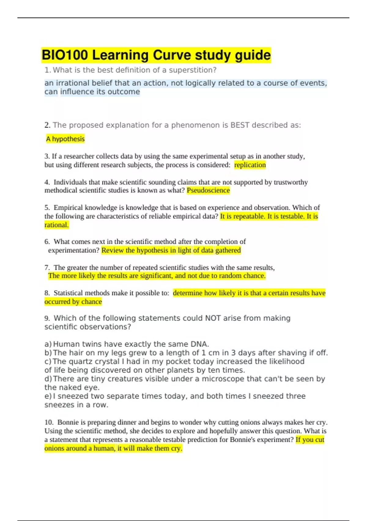 1. What is the best definition of a superstition?