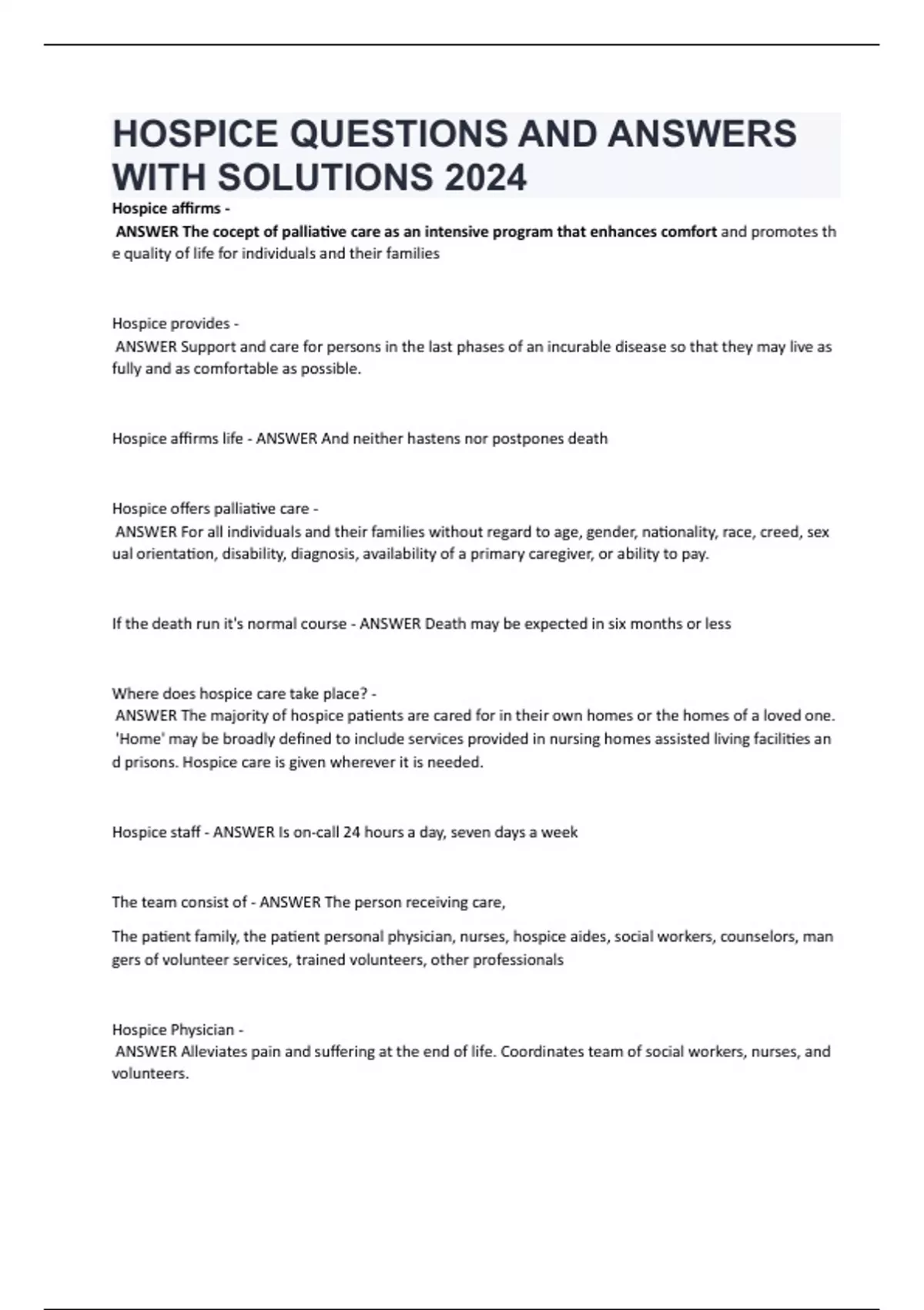 HOSPICE QUESTIONS AND ANSWERS WITH SOLUTIONS 2024