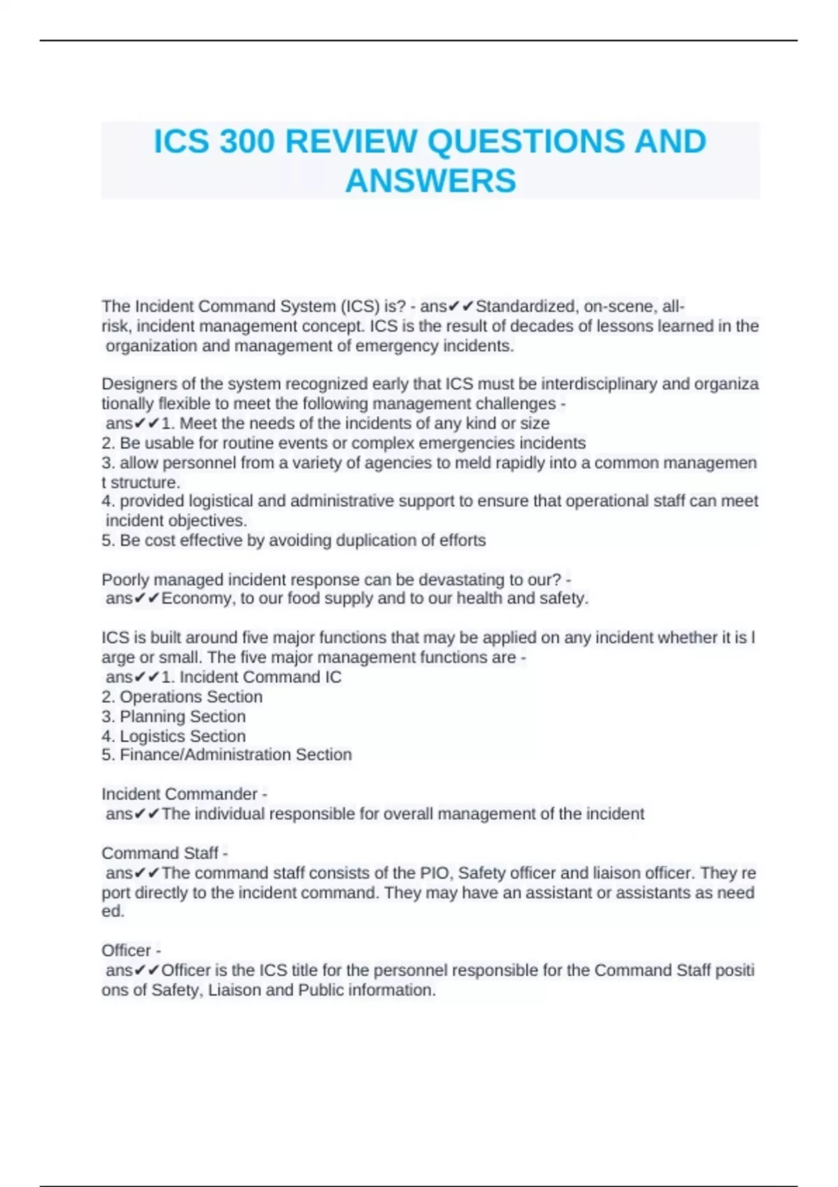 ICS 300 REVIEW QUESTIONS AND ANSWERS
