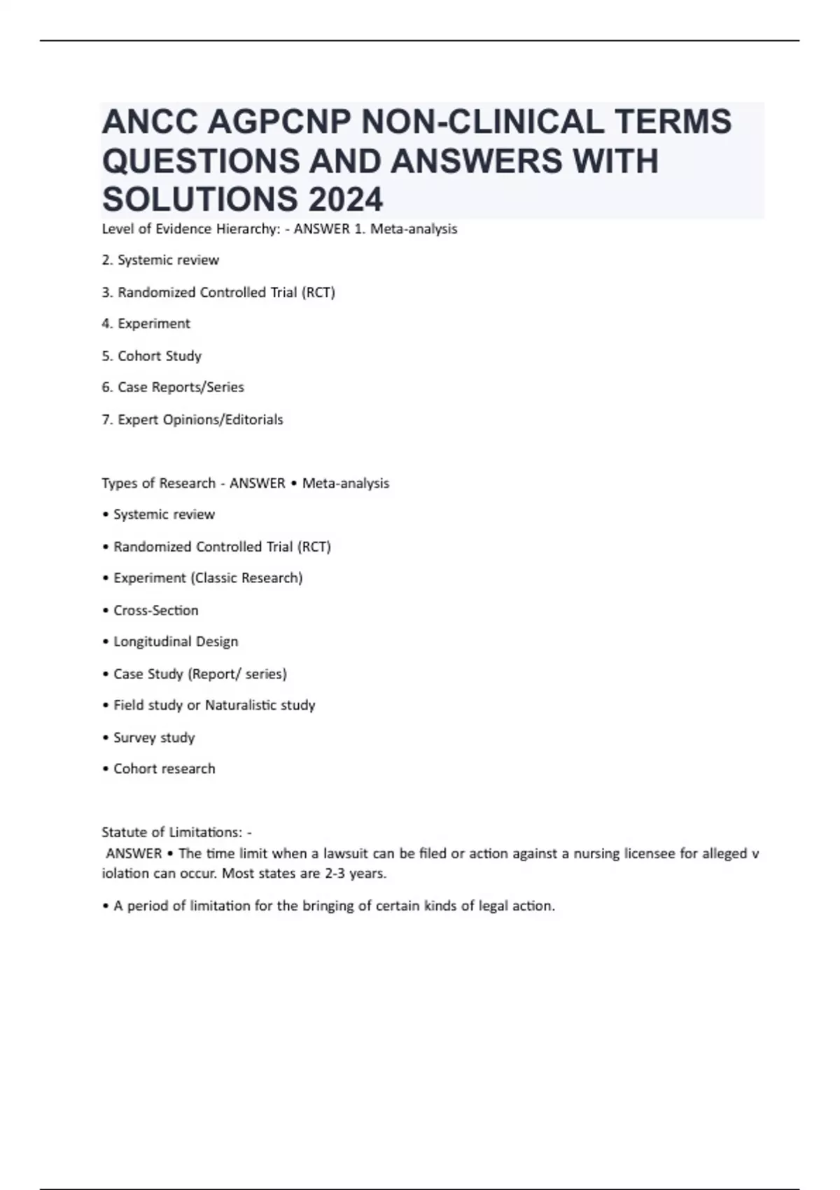 ANCC AGPCNP NON-CLINICAL TERMS QUESTIONS AND ANSWERS WITH SOLUTIONS 2024