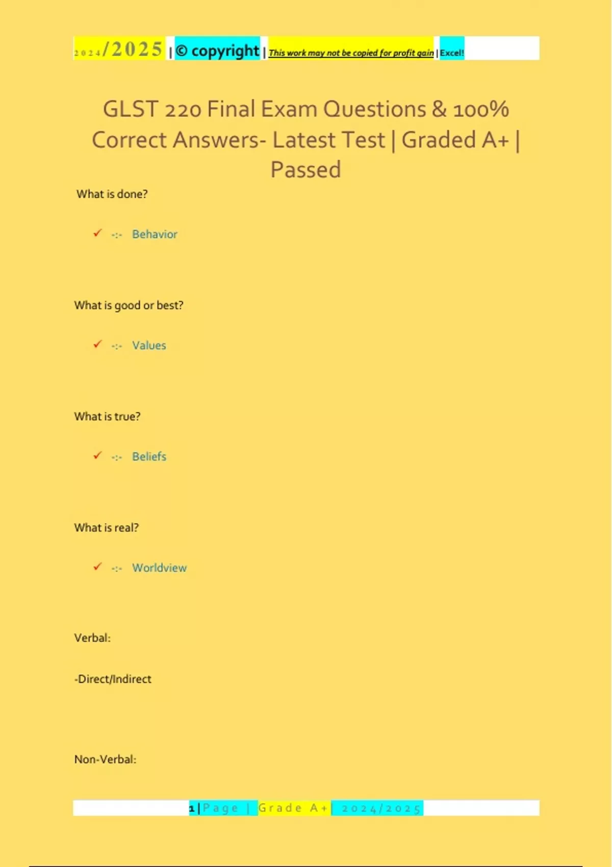 GLST 220 Final Exam Questions & 100% Correct Answers- Latest Test | Graded A+ | Passed