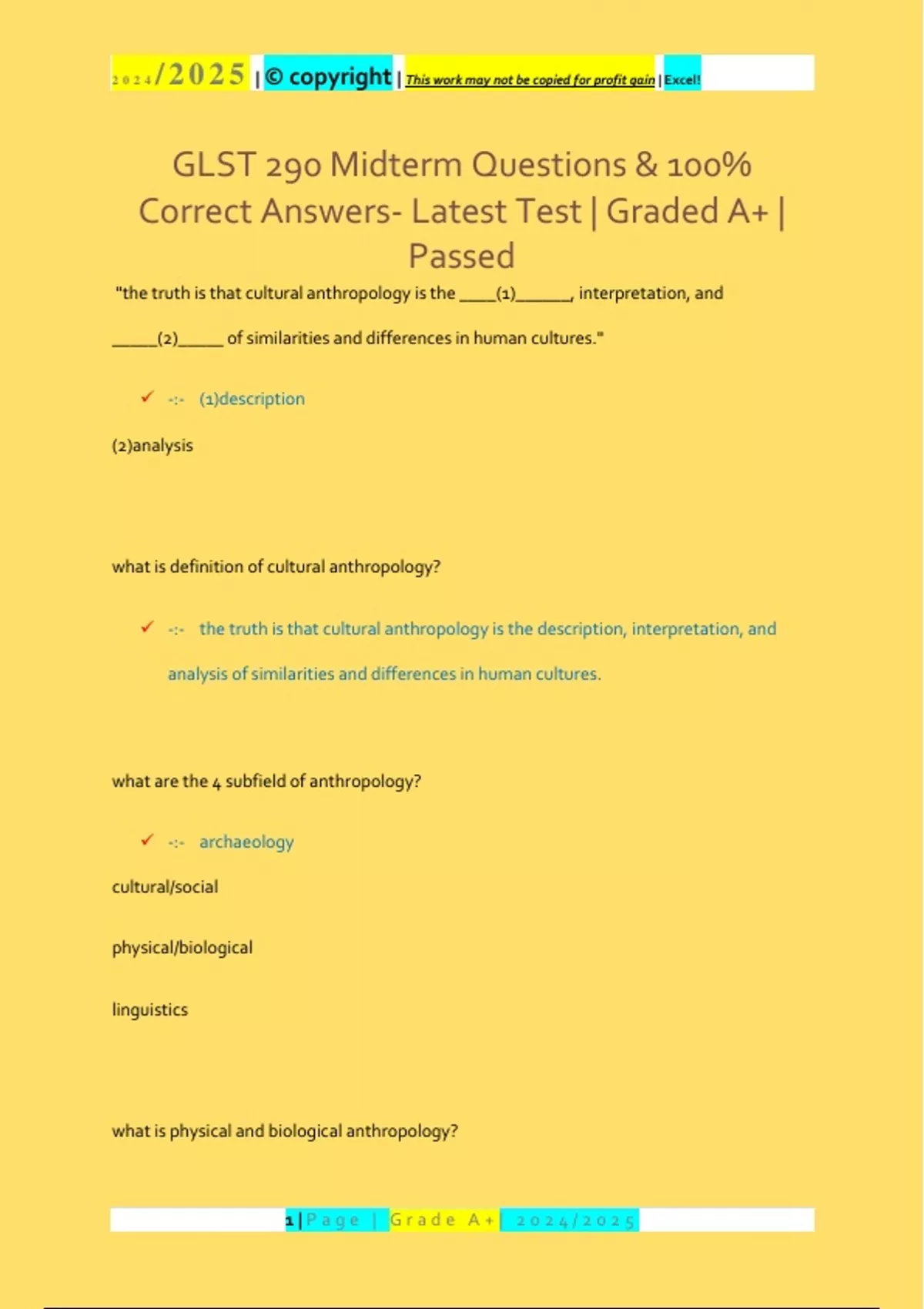 , 2024 /2025 | © copyright | This work may not be copied for profit gain | Excel!