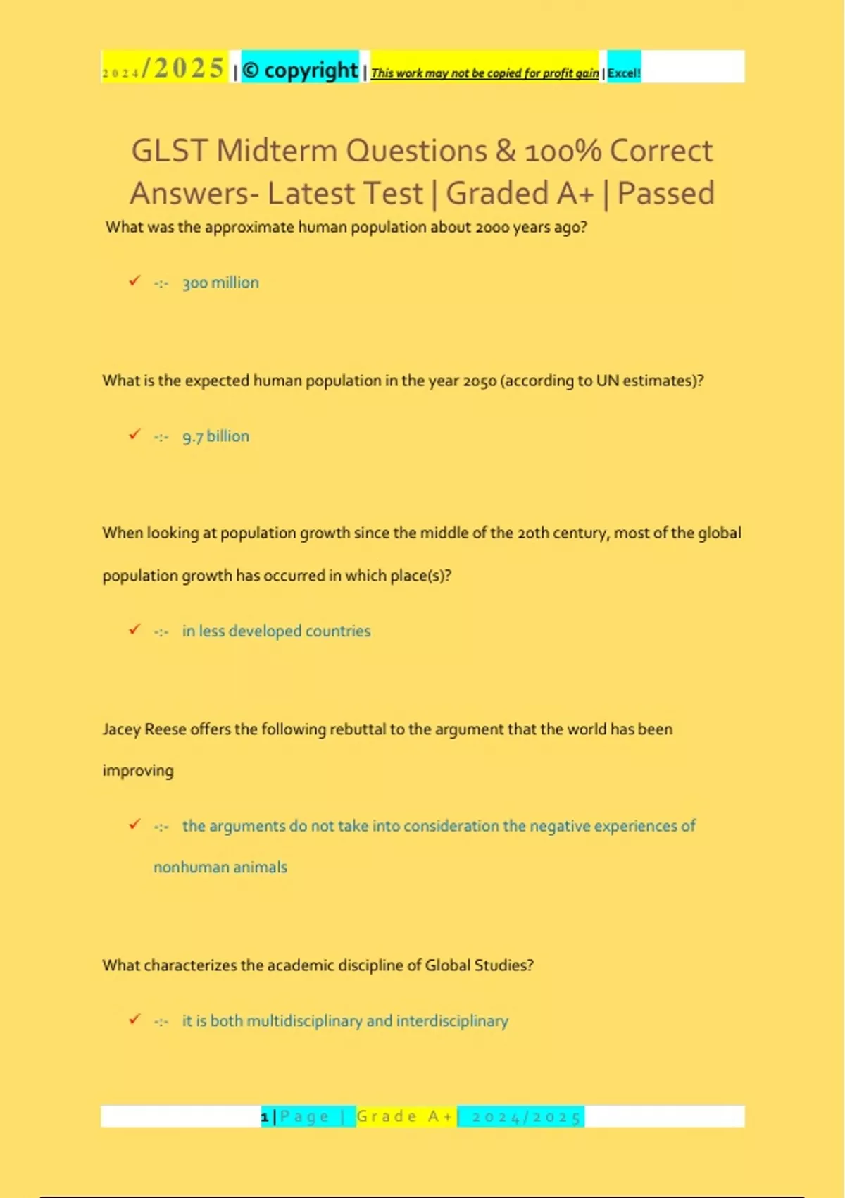 GLST Midterm Questions & 100% Correct Answers- Latest Test | Graded A+ | Passed