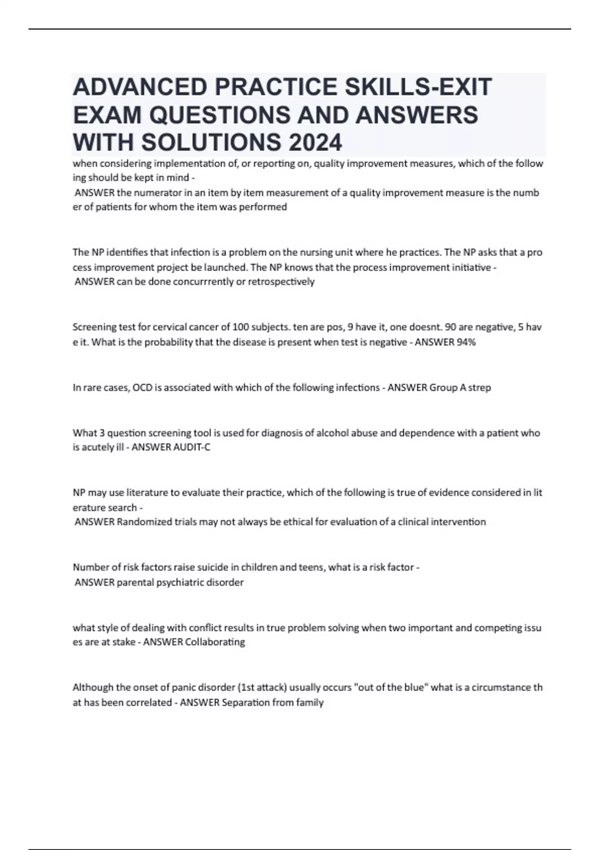 ADVANCED PRACTICE SKILLS-EXIT EXAM QUESTIONS AND ANSWERS WITH SOLUTIONS 2024