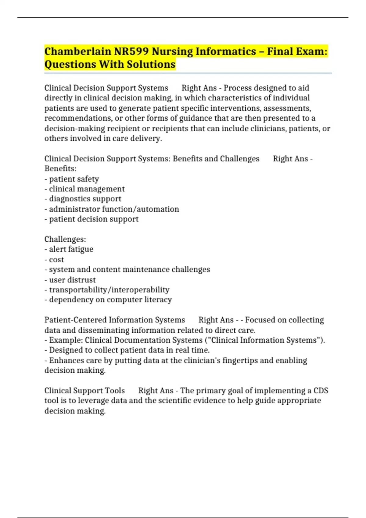 Clinical Decision Support Systems Right Ans - Process designed to aid