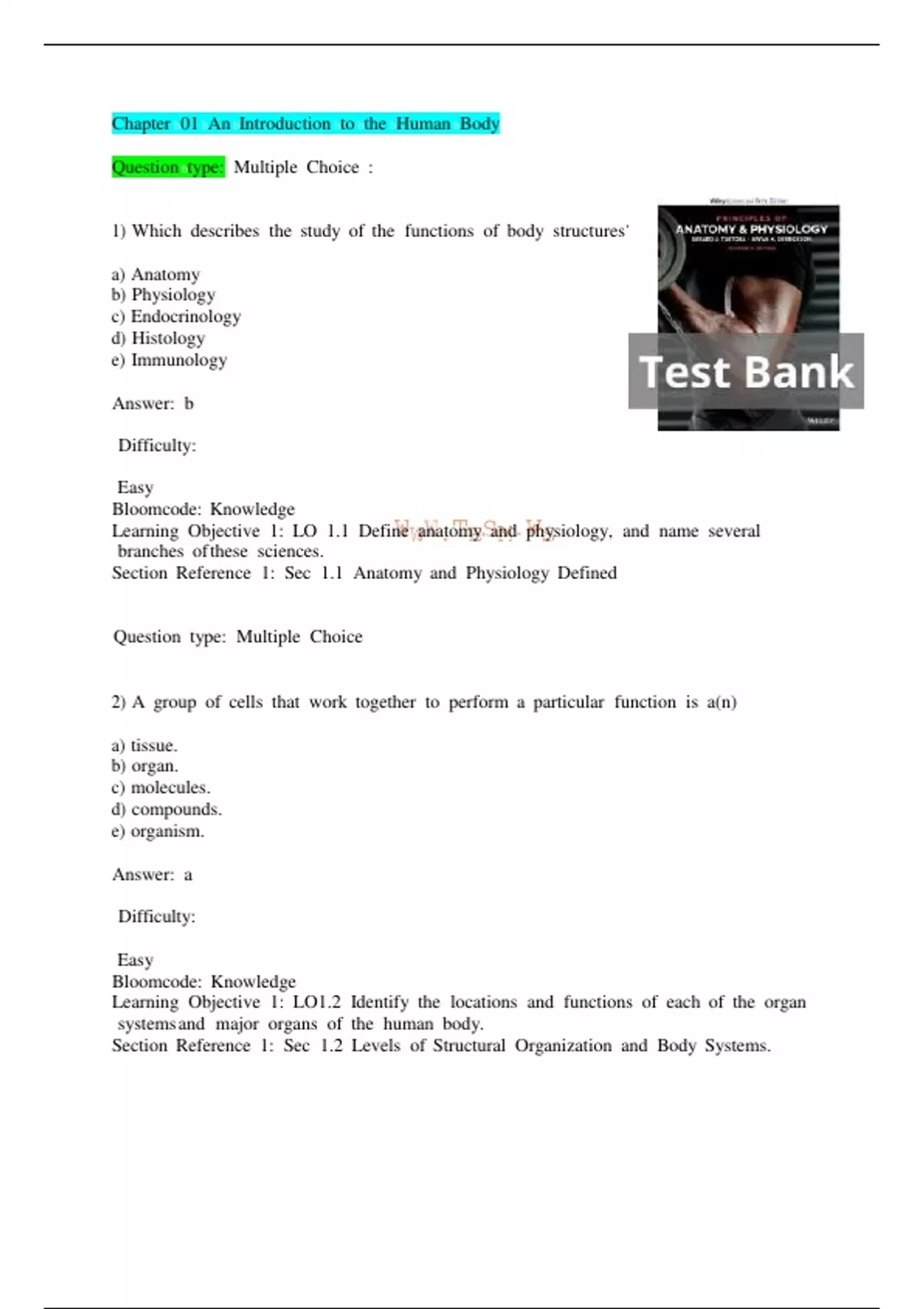 Section bReference b1: bSec b1.1 bAnatomy band bPhysiology bDefined