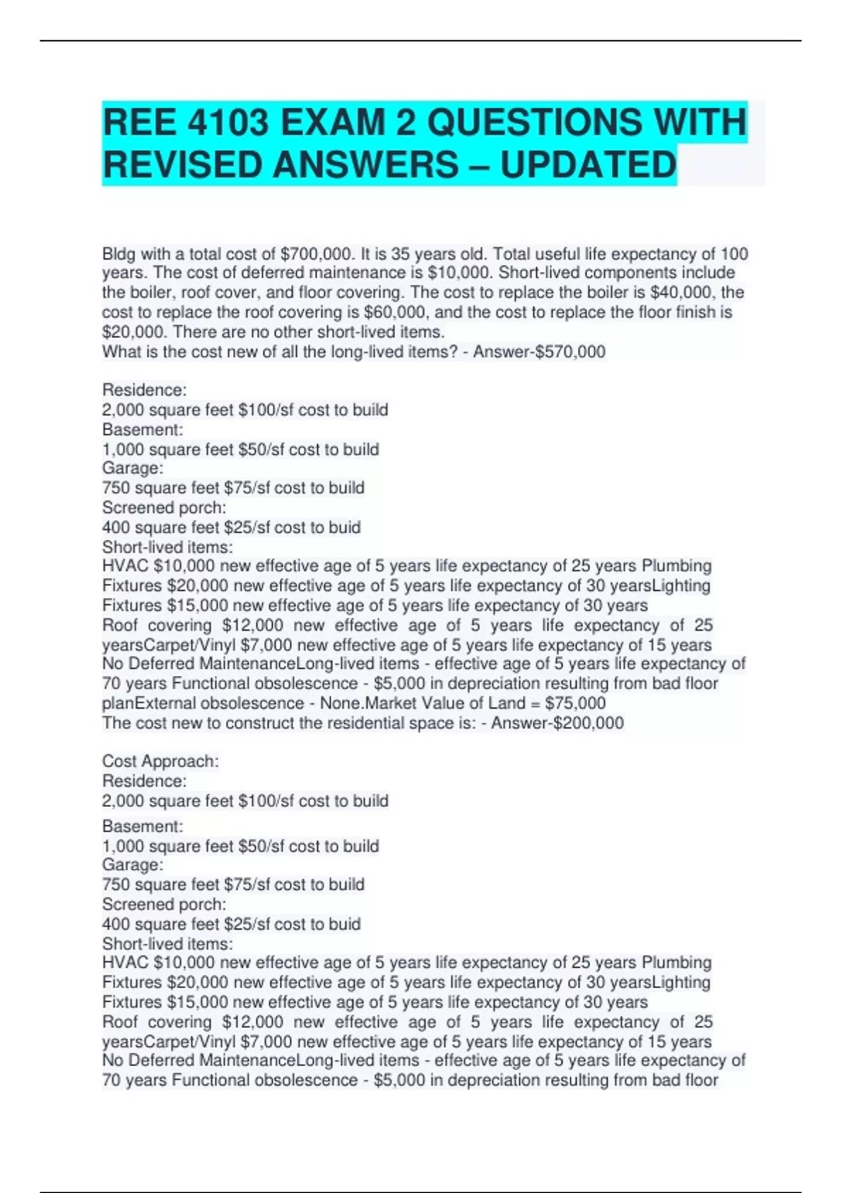 The cost new to construct the residential space is: - Answer-$200,000