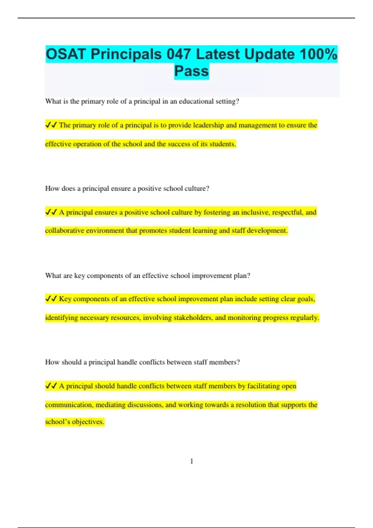 ✔✔ The primary role of a principal is to provide leadership and management to ensure the