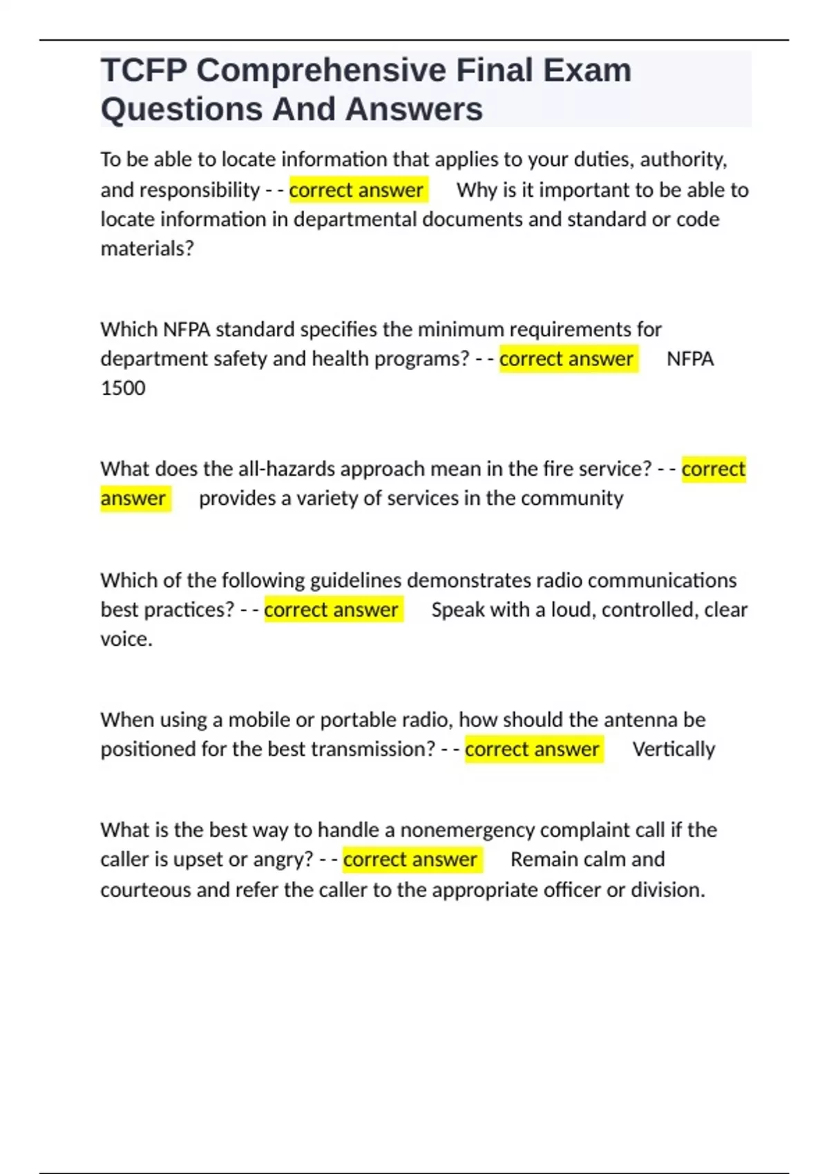 ,TCFP Comprehensive Final Exam