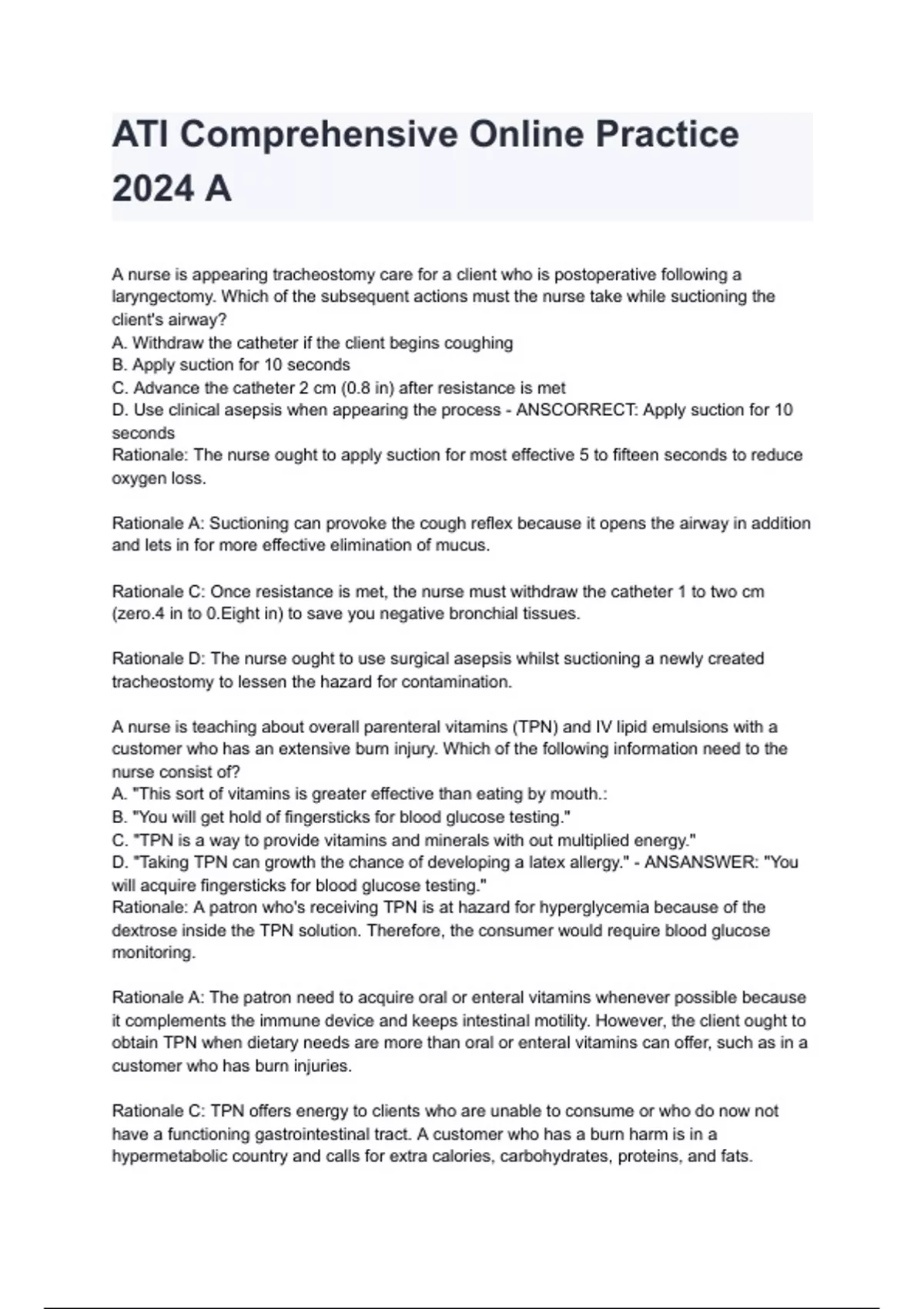 D. "Taking TPN can growth the chance of developing a latex allergy." - ANSANSWER: "You