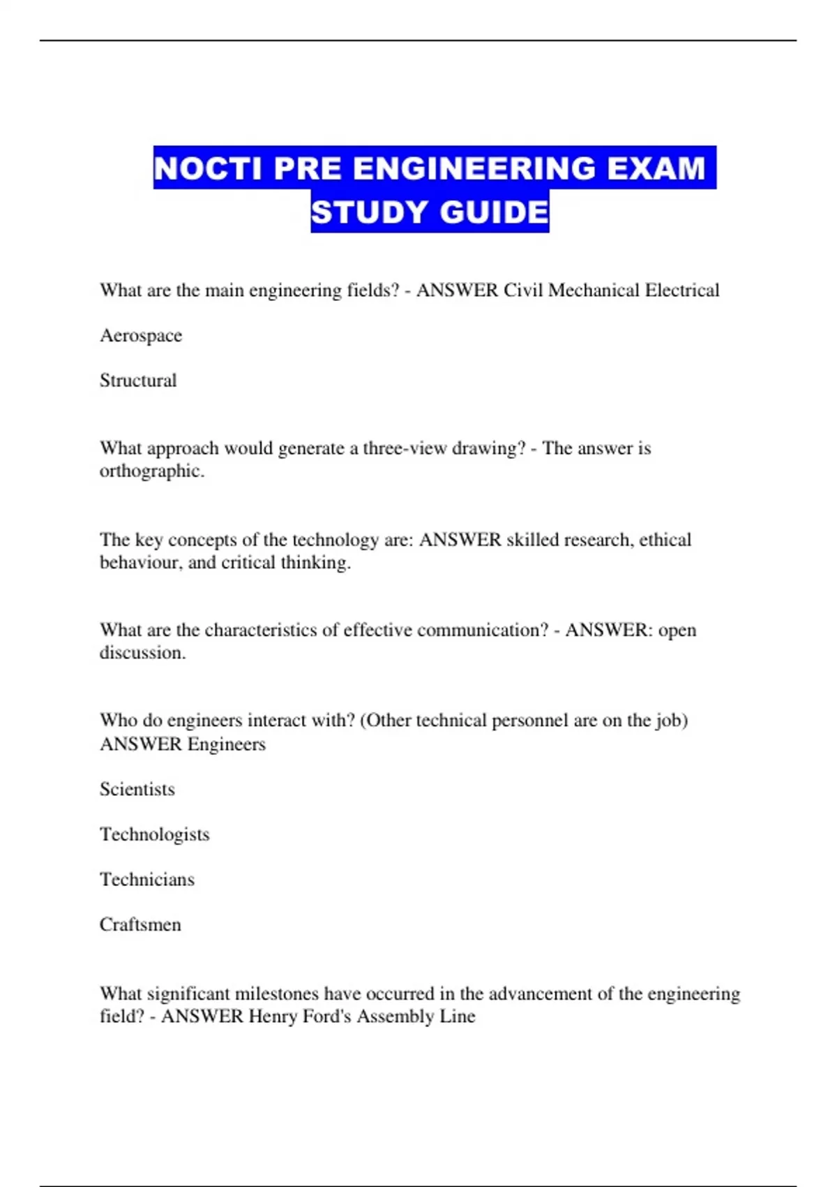 ... NOCTI PRE ENGINEERING EXAM STUDY GUIDE
