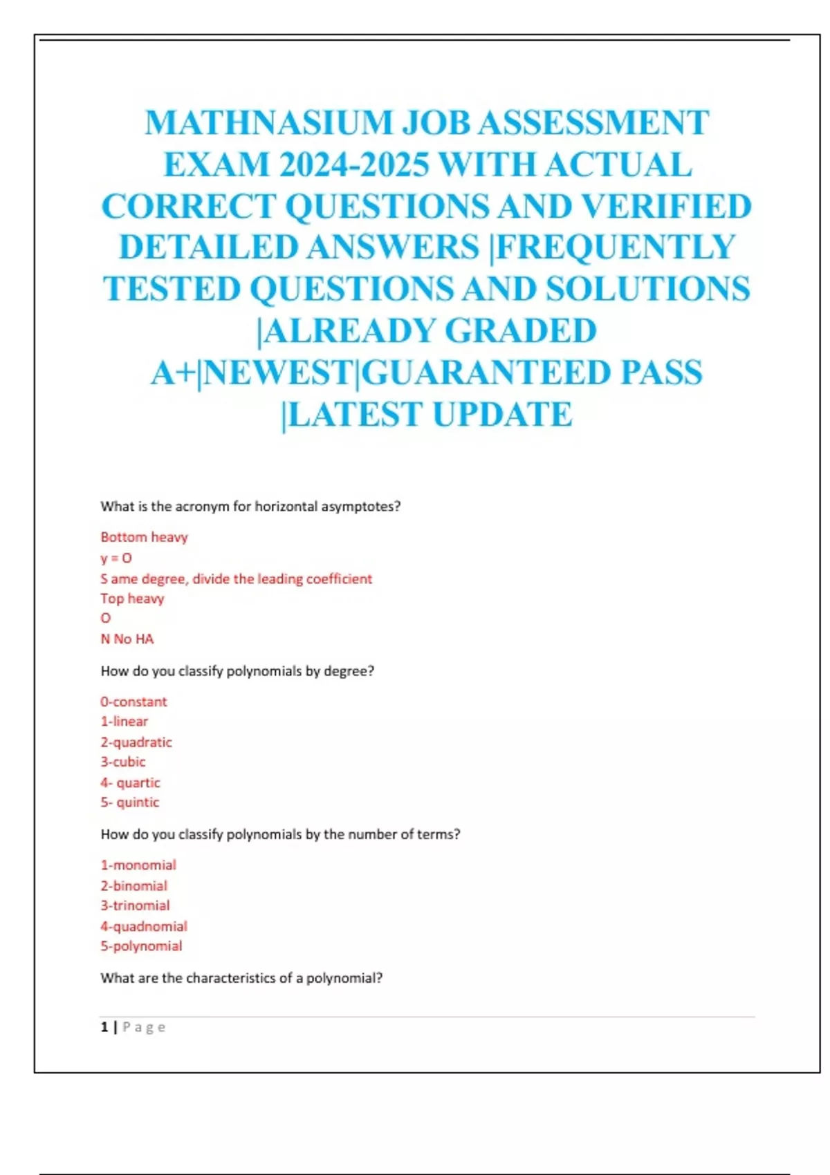 CORRECT QUESTIONS AND VERIFIED