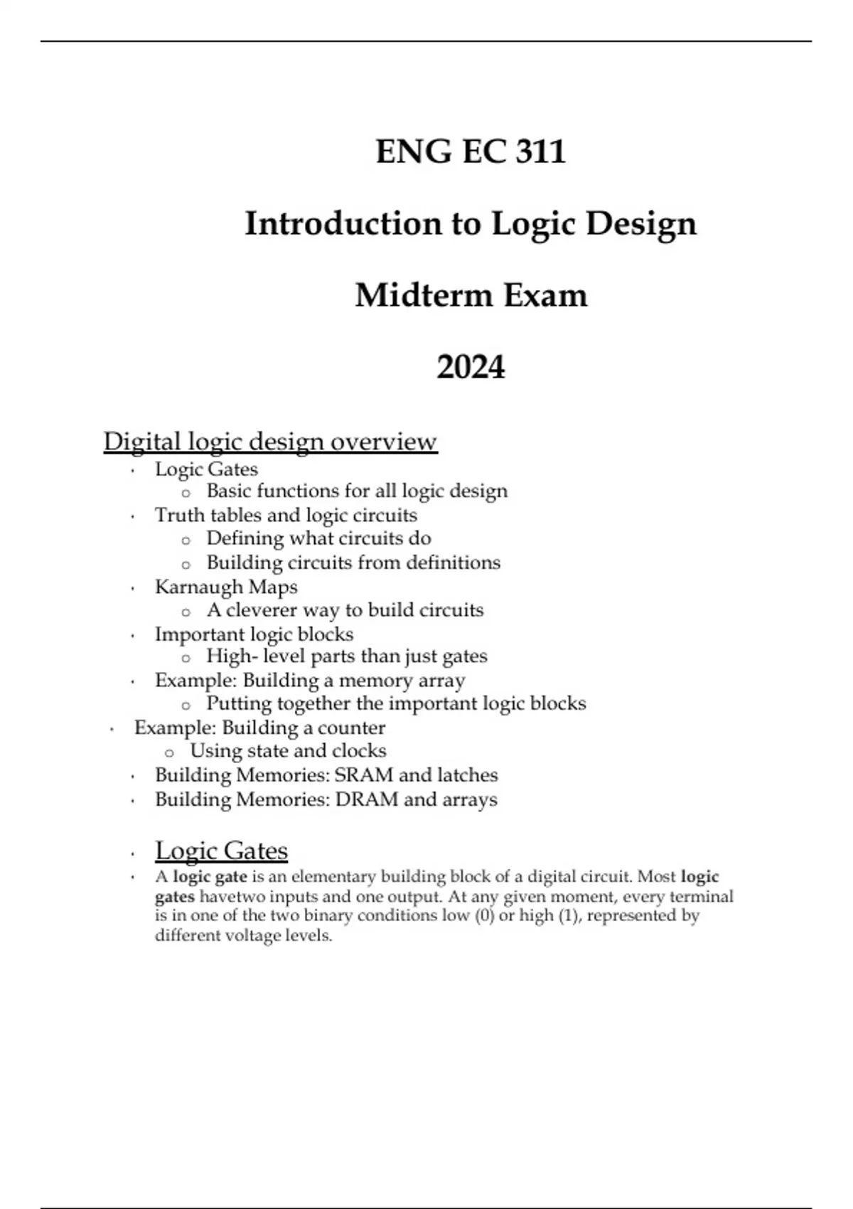 (BU) ENG EC 311 - Introduction to Logic Design - Midterm Exam 1 Guide 2024(BU) ENG EC 311 - Introduction to Logic Design - Midterm Exam 1 Guide 2024(BU) ENG EC 311 - Introduction to Logic Design - Midterm Exam 1 Guide 2024