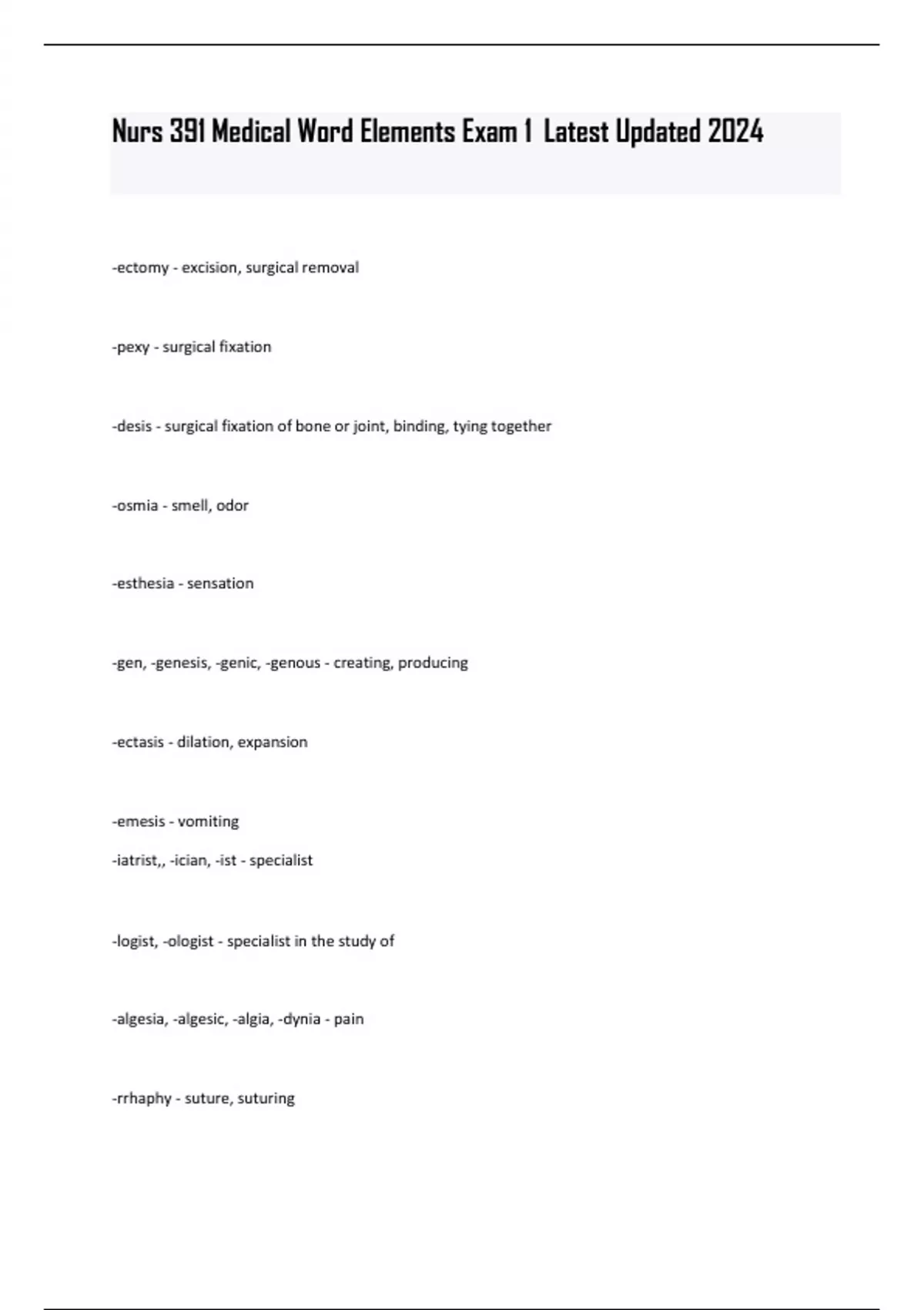 Nurs 391 Medical Word Elements Exam 1 Latest Updated 2024