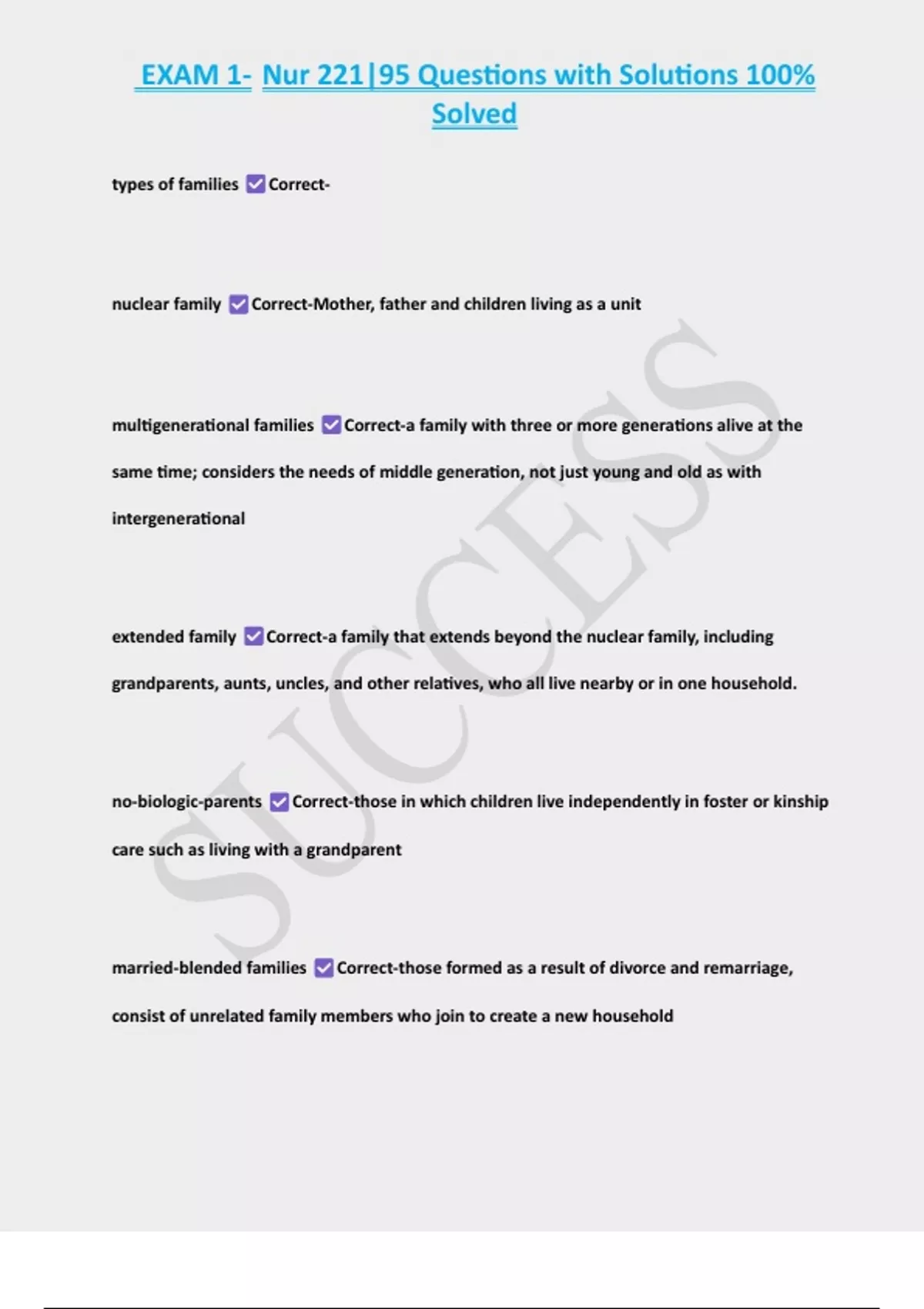 EXAM 1- Nur 221|95 Questions with Solutions 100% Solved