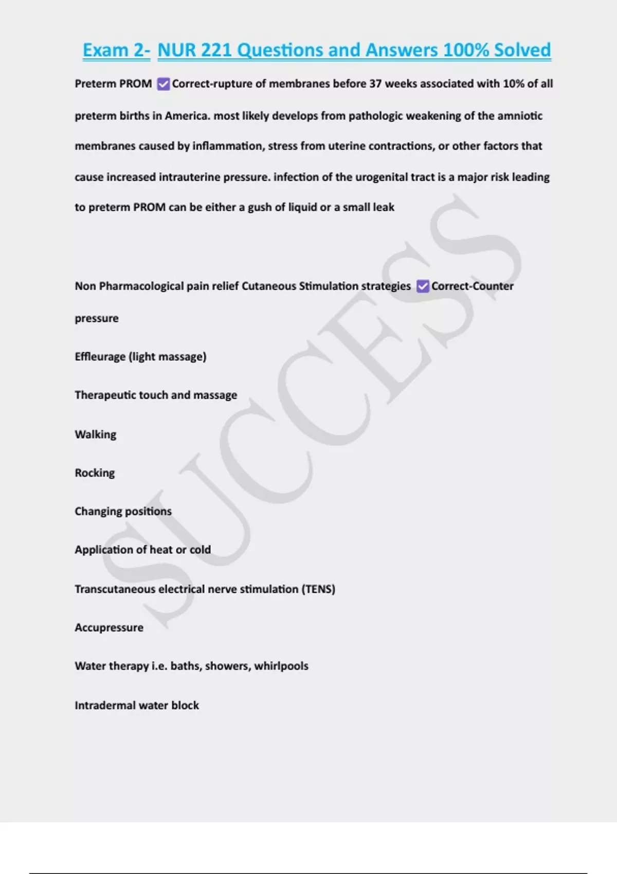 Non Pharmacological pain relief Cutaneous Stimulation strategies Correct-Counter