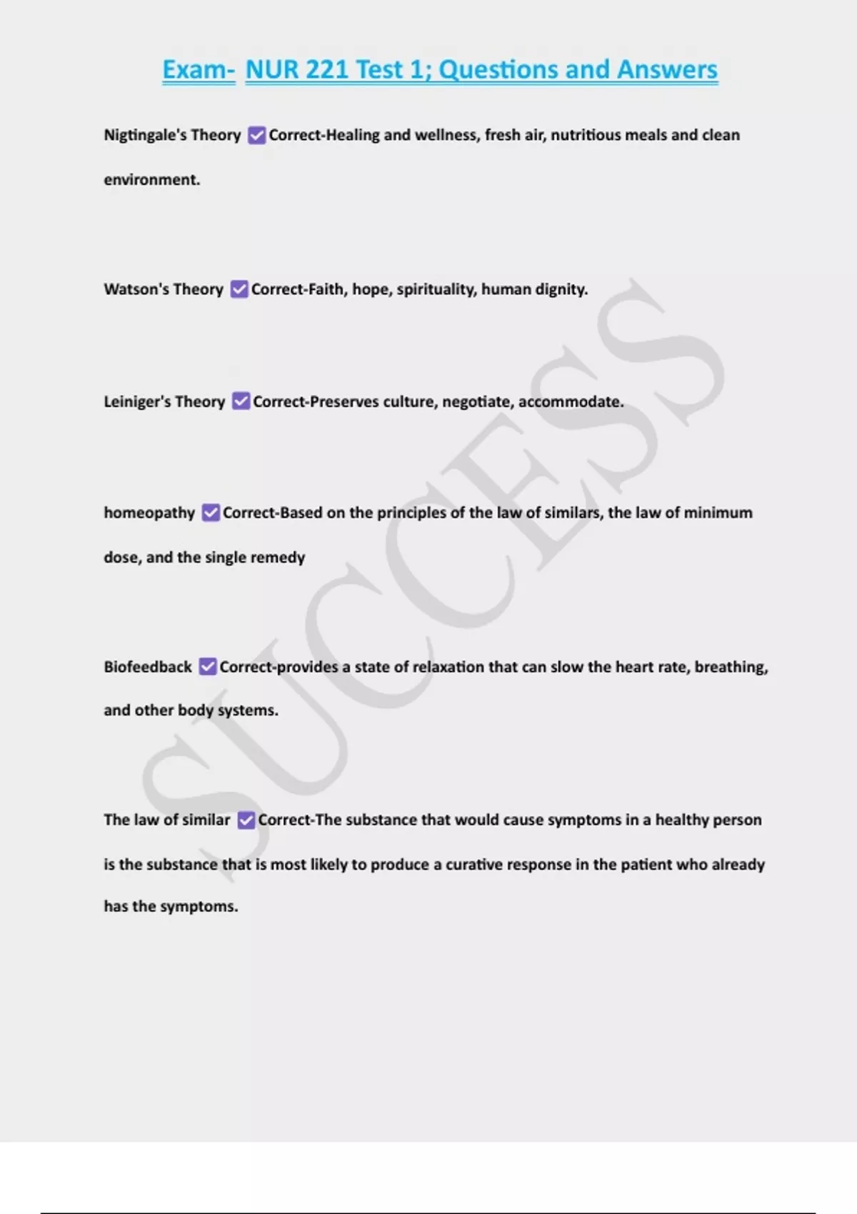 Ace Your Exams with Premium Study Guides! Unlock your full potential with our expertly crafted revision materials. Whether you're prepping for exams, quizzes, or looking to solidify your understanding, we've got you covered. Our study guides, summaries, and test banks are designed to simplify complex topics and enhance your knowledge retention. What We Offer: Comprehensive Summaries: Key points made easy for quick revision. Test Banks: Practice with real exam-like questions. Exam Prep Guides: Focused content to boost your scores. Instant Access: Download and start studying immediately! Don’t just study harder—study smarter! Excel in your exams with our trusted materials. You are Welcome. SUCCESS!!!