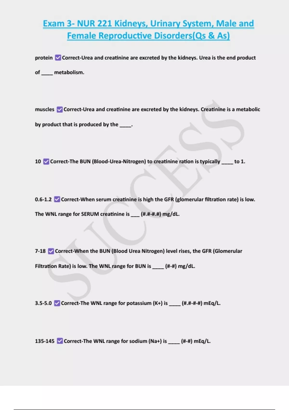 Exam 3- NUR 221 Kidneys, Urinary System, Male and Female Reproductive Disorders(Qs & As)