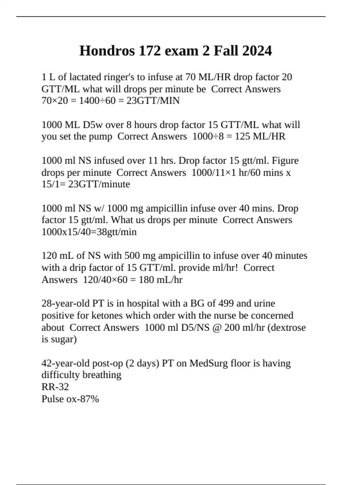 with a drip factor of 15 GTT/ml. provide ml/hr! Correct