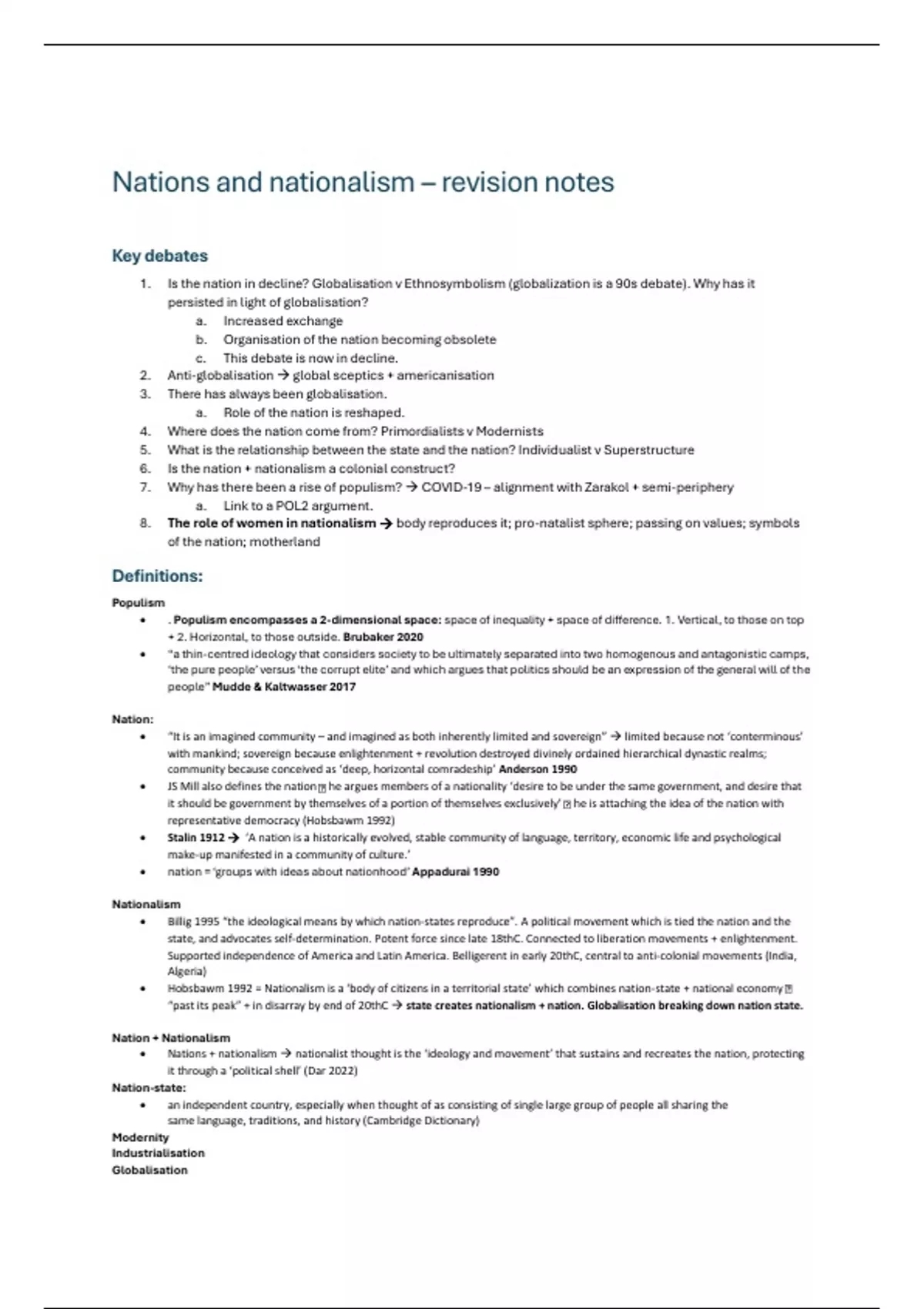 Summary SOC1 Modern Societies: Nations and Nationalism - Introduction to Sociology: Modern Societies I