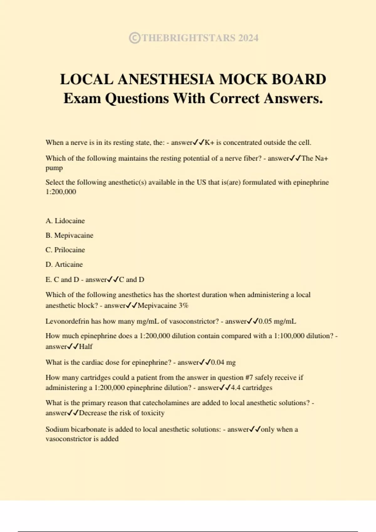 Local anesthetics work by penetrating the nerve to inhibit: - answer✔✔Na+ efflux