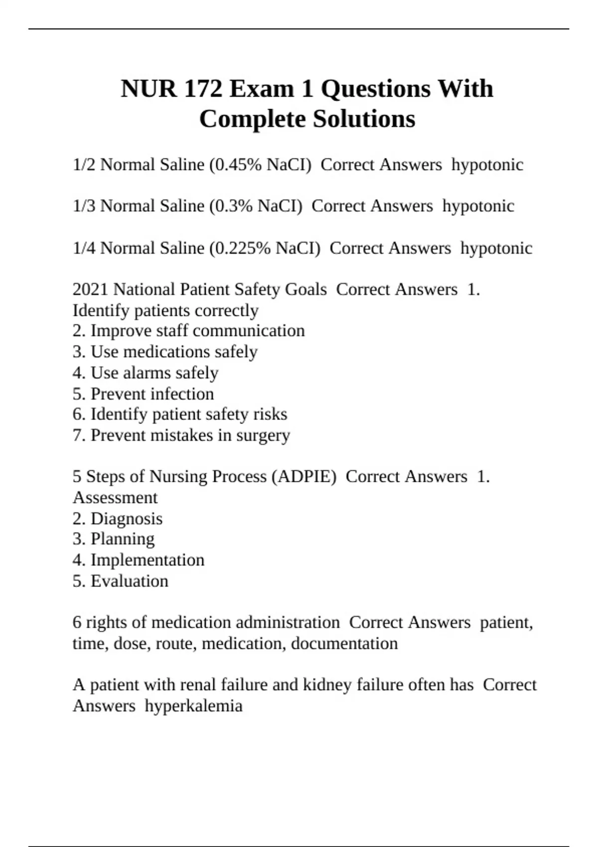 1/2 Normal Saline (0.45% NaCI) Correct Answers hypotonic