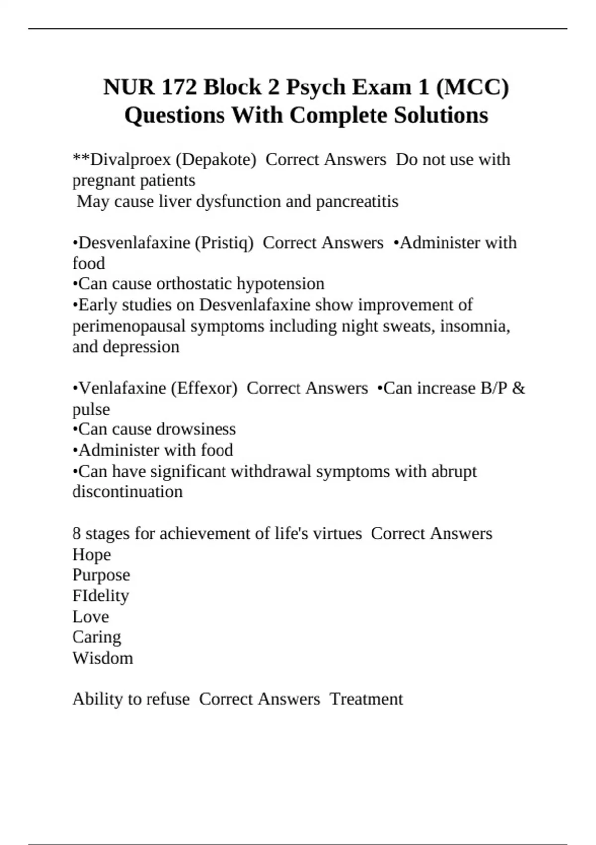 •Desvenlafaxine (Pristiq) Correct Answers •Administer with