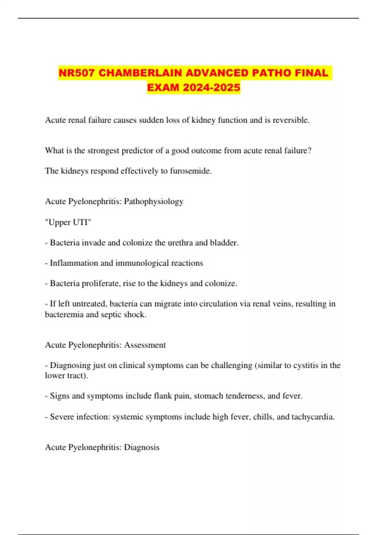 NR507 CHAMBERLAIN ADVANCED PATHO FINAL EXAM ...