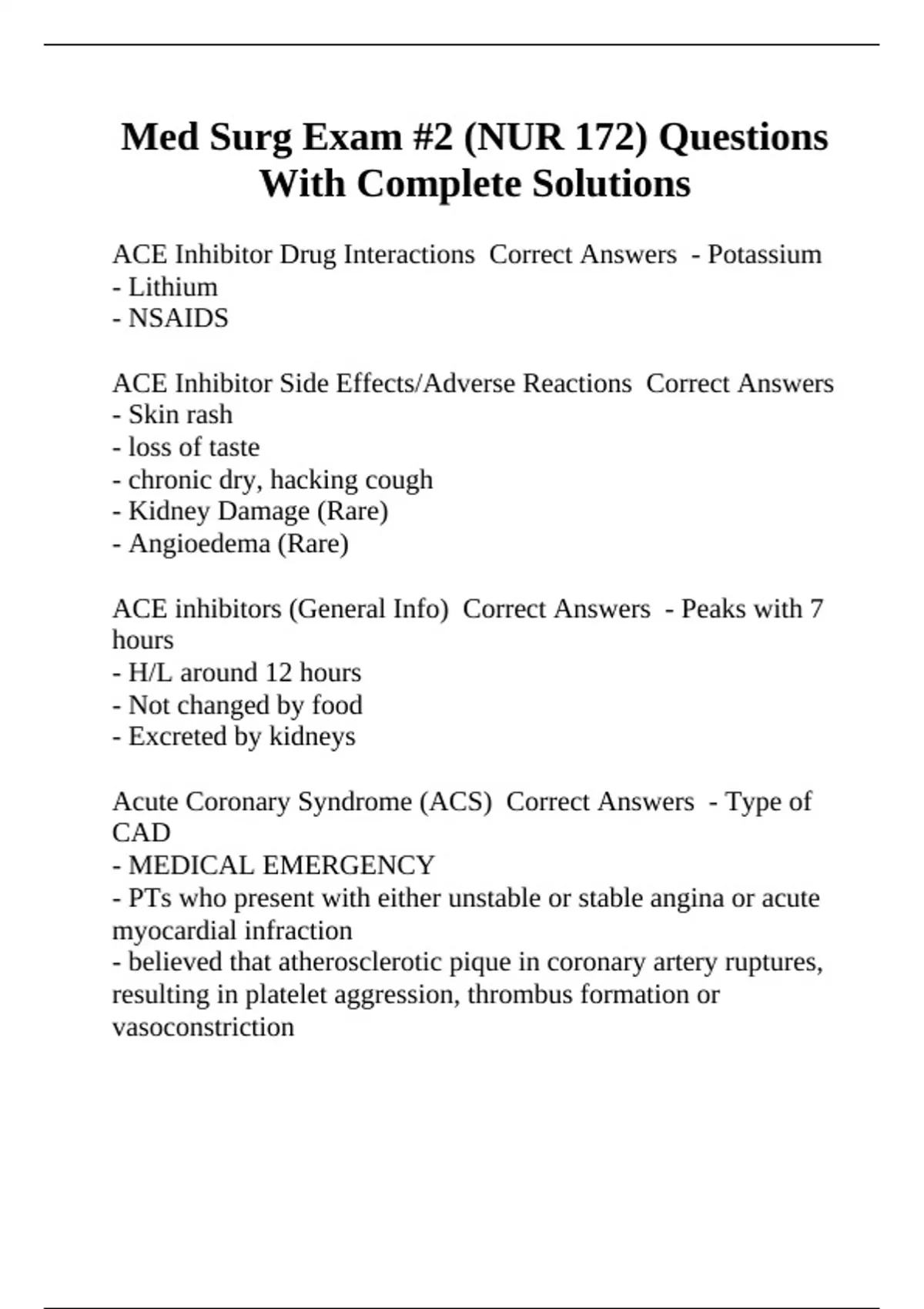 ACE inhibitors (General Info) Correct Answers - Peaks with 7
