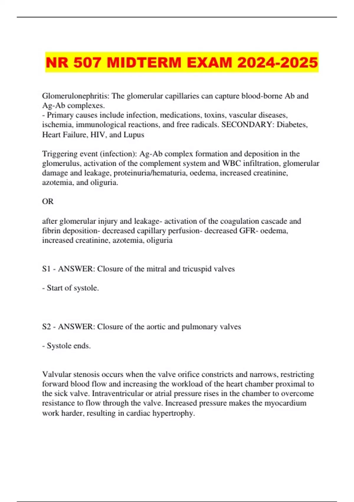 the sick valve. Intraventricular or atrial pressure rises in the chamber to overcome