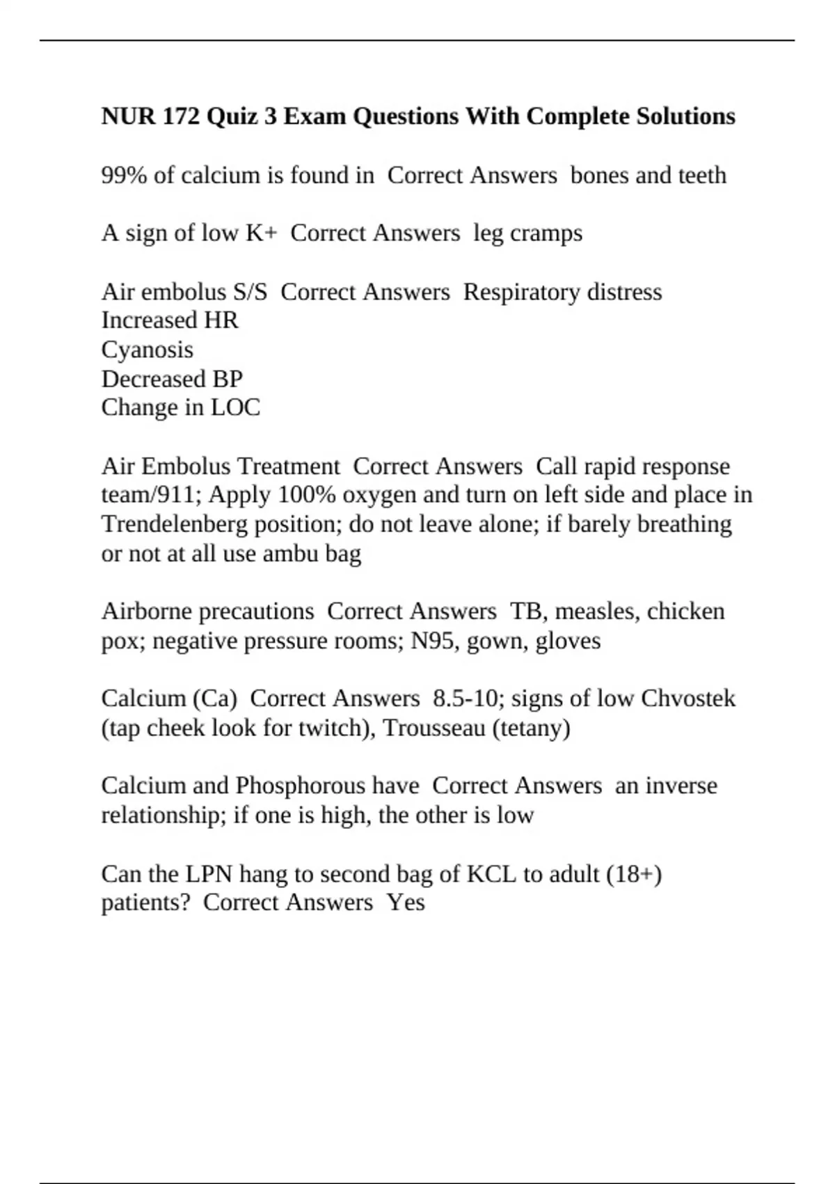 Calcium (Ca) Correct Answers 8.5-10; signs of low Chvostek