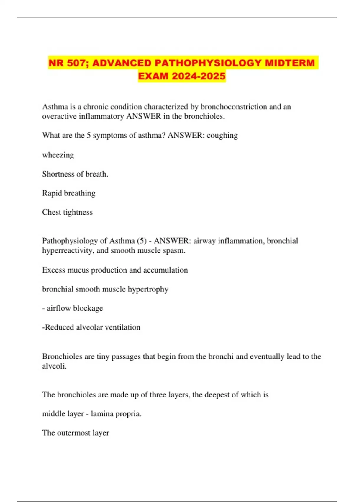 NR 507; ADVANCED PATHOPHYSIOLOGY MIDTERM EXAM ...
