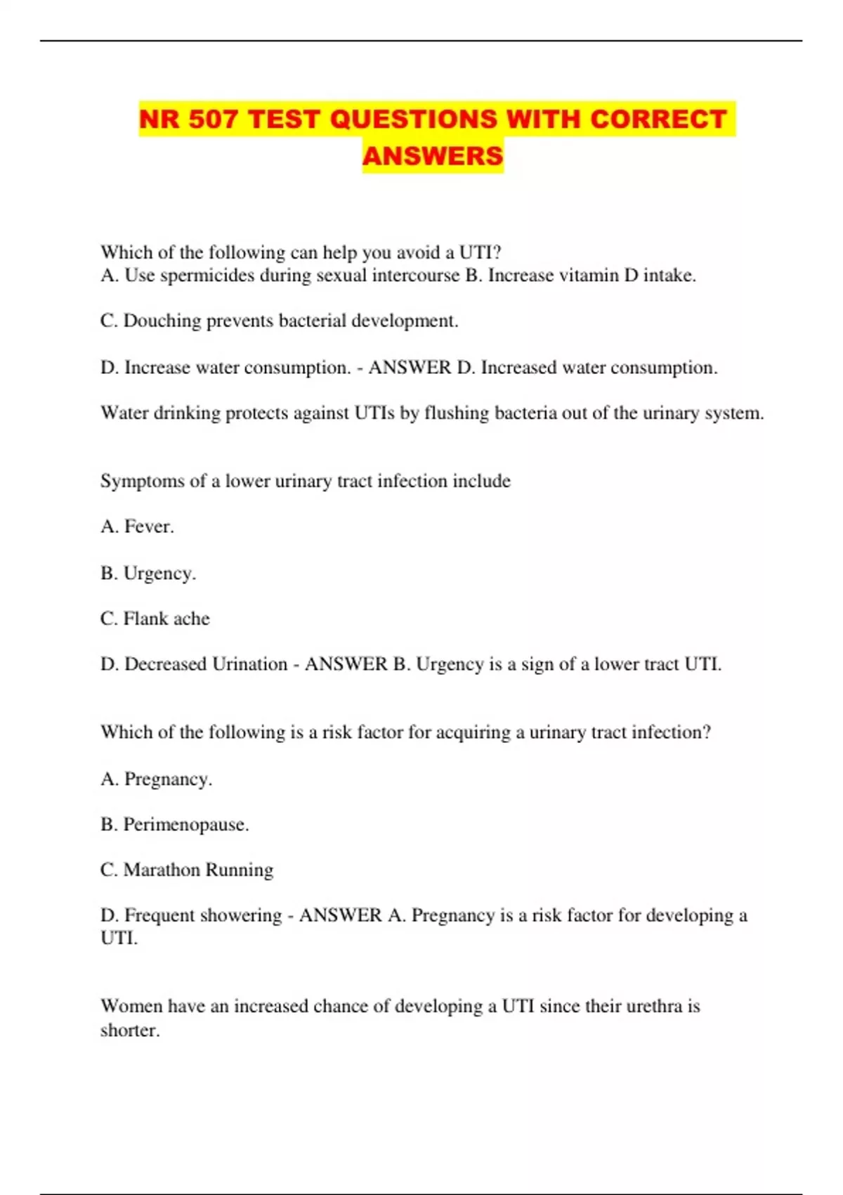 NR 507 TEST QUESTIONS WITH CORRECT