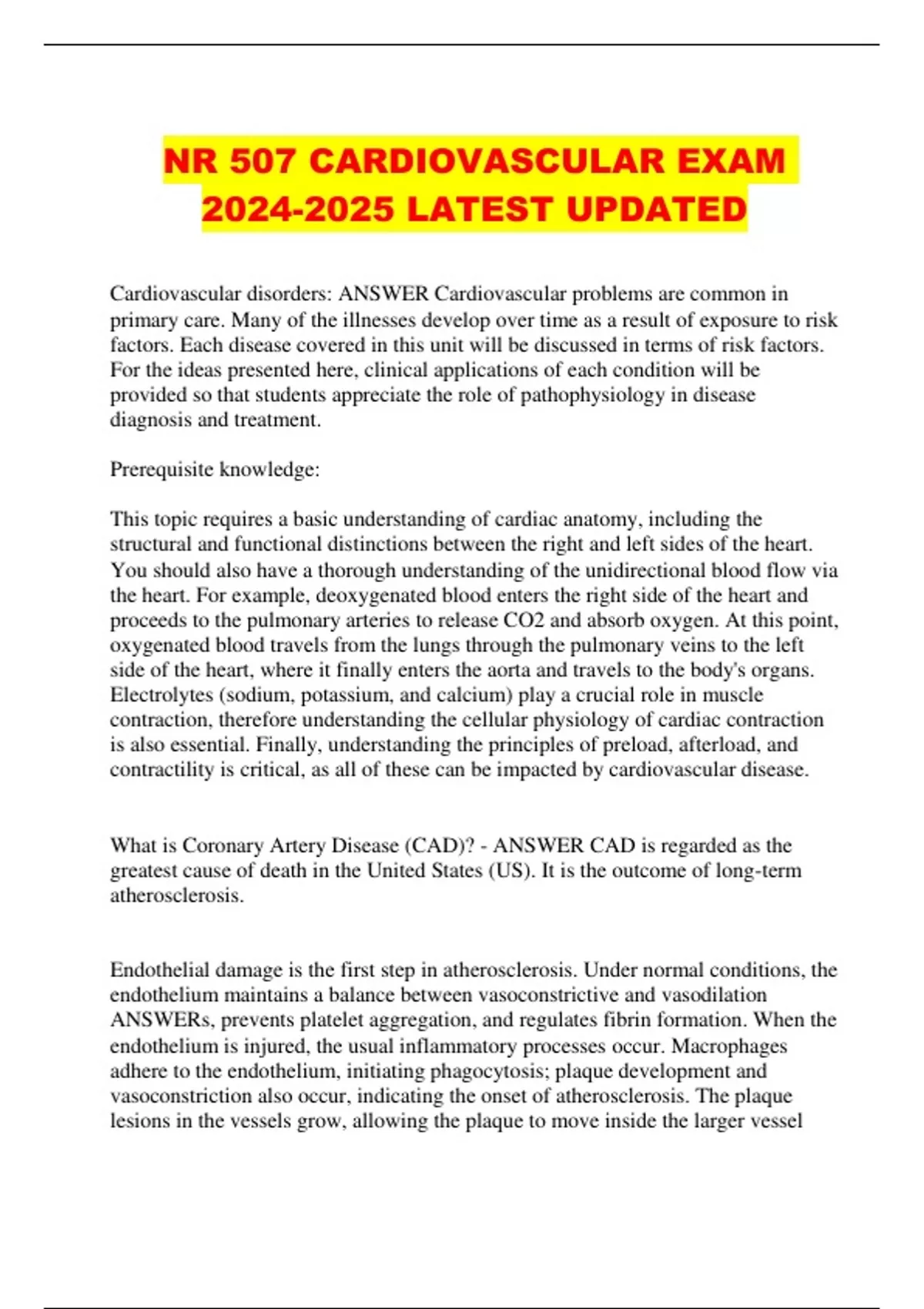 Cardiovascular disorders: ANSWER Cardiovascular problems are common in